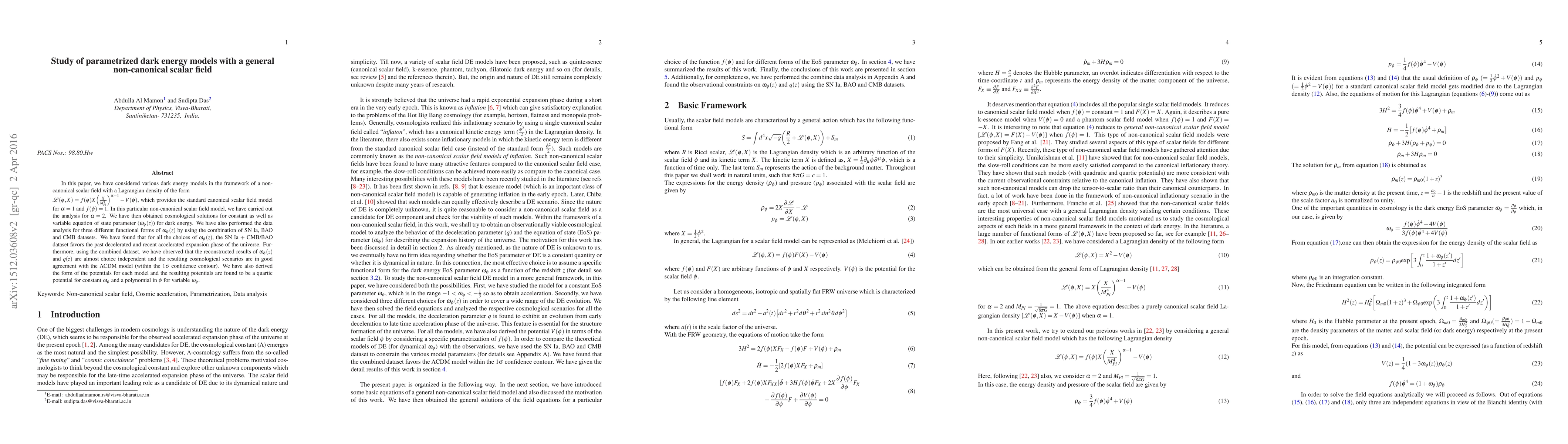 This study investigates dark energy models using a non-canonical scalar field, finding that most data combinations favor past deceleration and recent acceleration, with results in good agreement with the LambdaCDM model.