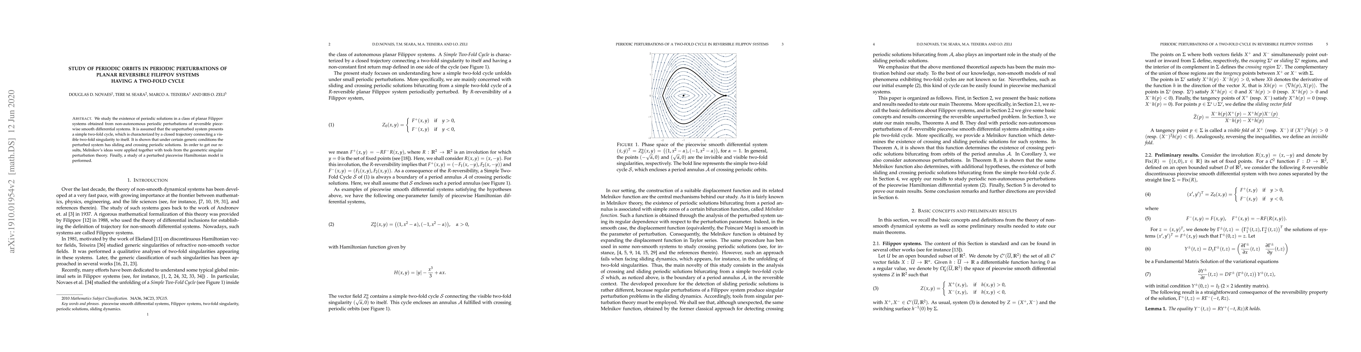 We study the existence of periodic solutions in a class of planar Filippov systems obtained from non-autonomous periodic perturbations of reversible piecewise smooth differential systems. It is assumed that the unperturbed system presents a simple two-fold cycle, which is characterized by a closed trajectory connecting a visible two-fold singularity to itself. It is shown that under certain generic conditions the perturbed system has sliding and crossing periodic solutions. In order to get our results, Melnikov's ideas were applied together with tools from the geometric singular perturbation theory. Finally, a study of a perturbed piecewise Hamiltonian model is performed.