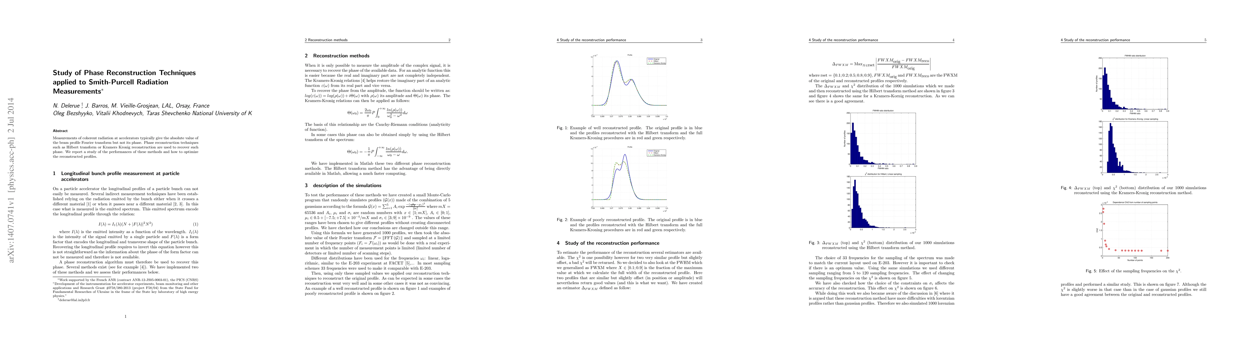 Measurements of coherent radiation at accelerators typically give the absolute value of the beam profile Fourier transform but not its phase. Phase reconstruction techniques such as Hilbert transform or Kramers Kronig reconstruction are used to recover such phase. We report a study of the performances of these methods and how to optimize the reconstructed profiles.