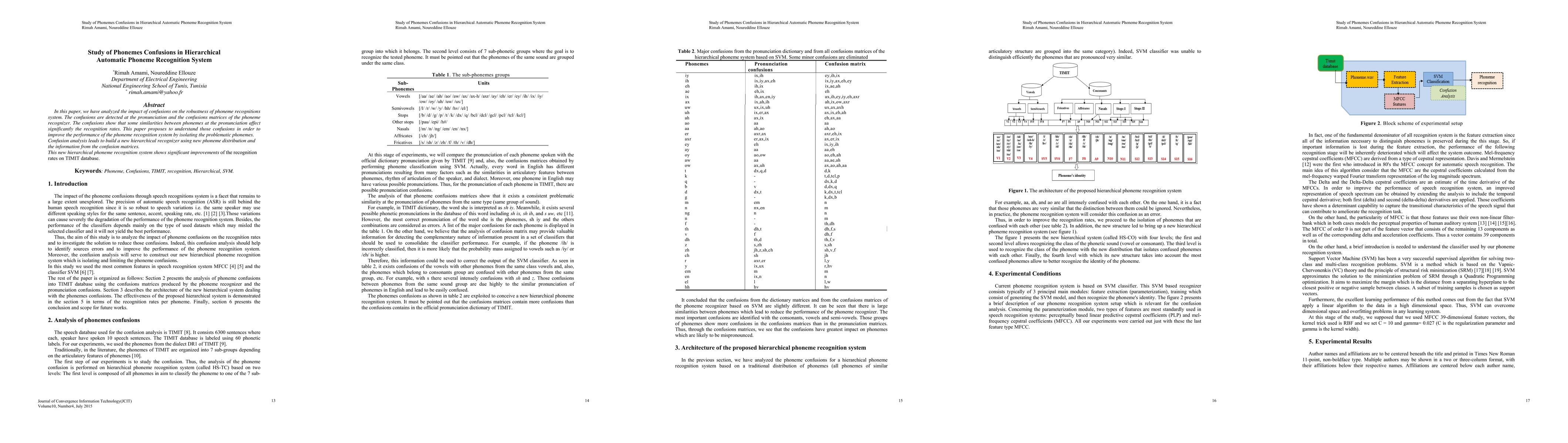 This paper analyzes phoneme confusions in a hierarchical automatic recognition system, identifying significant impacts on recognition rates due to phonetic similarities. It proposes a new hierarchical recognizer based on confusion matrix insights, resulting in improved recognition performance on the TIMIT database.