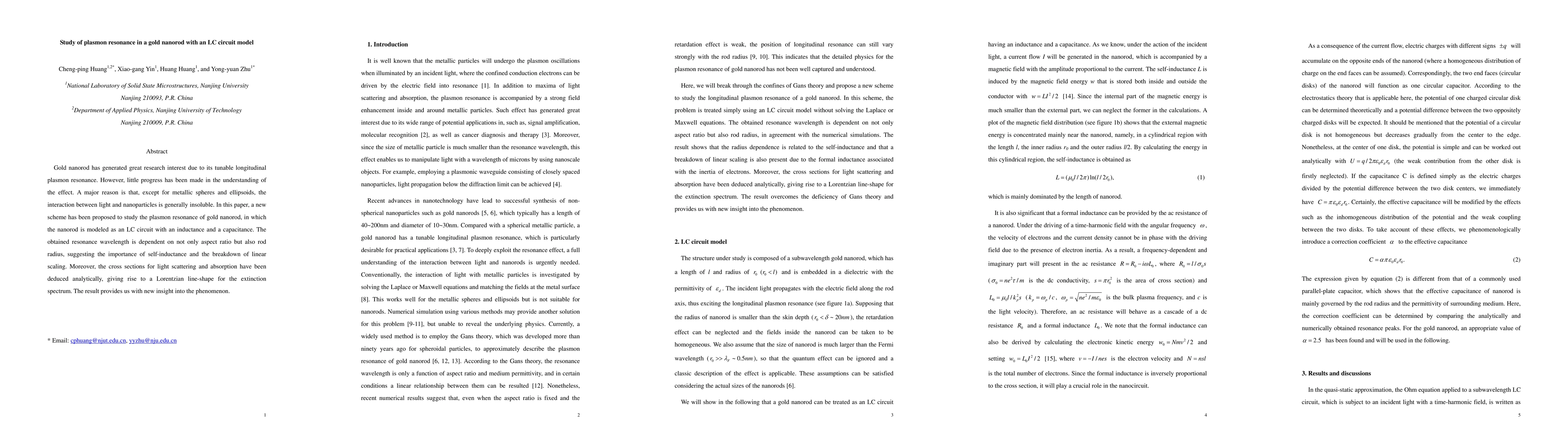 This study proposes an LC circuit model to analyze the plasmon resonance in gold nanorods, finding that resonance wavelength depends on both aspect ratio and rod radius. Analytical results show Lorentzian line-shape for extinction spectrum, offering new insights into the breakdown of linear scaling in plasmonic interactions.