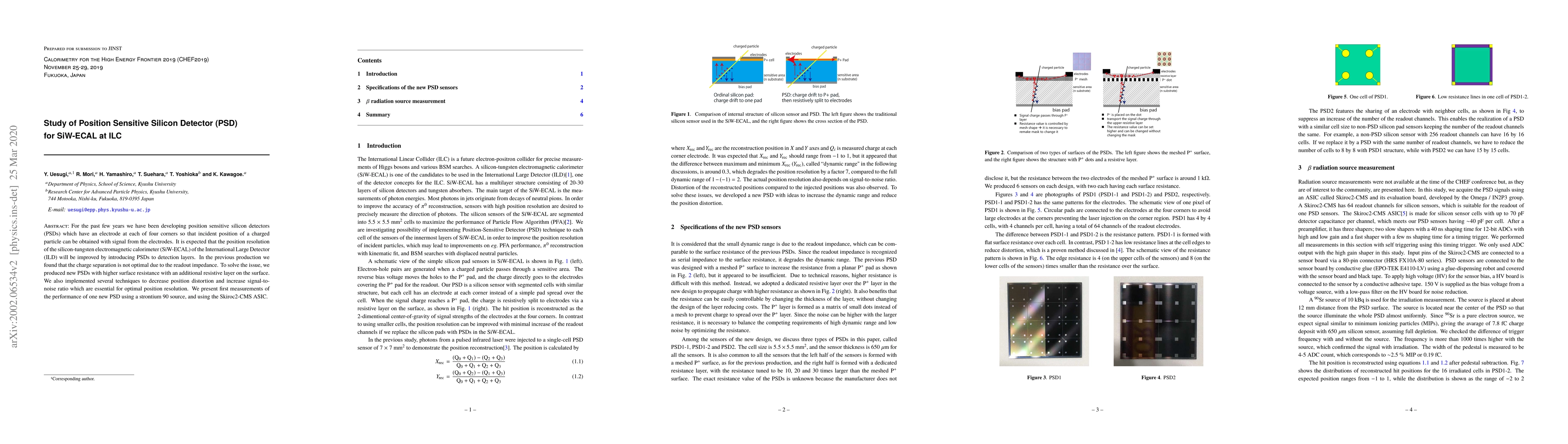 We are developing position sensitive silicon detectors (PSDs) which have an electrode at each of four corners so that incident position of a charged particle can be obtained with signal from the electrodes. It is expected that the position resolution of the electromagnetic calorimeter (ECAL) of the ILD detector will be improved by introducing PSDs to detection layers. We have been developing the PSDs for several years. In the previous production we found that the charge separation is not optimally done due to the readout impedance. To solve the issue, we produced new PSDs with higher surface resistance with an additional resistive layer on the surface. We also implemented several techniques to decrease position distortion and increase signal-to-noise ratio which are essential for the optimal position resolution. The measurements on the prototype sensors are ongoing, including radiation source measurement and laser measurement using an ASIC for silicon pad detectors.