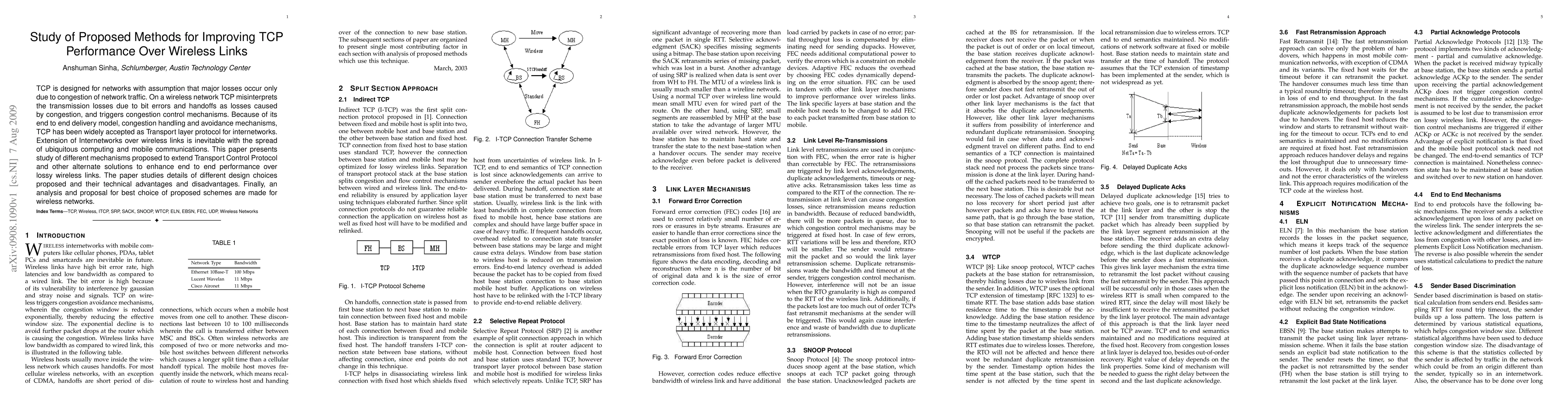 This paper examines various methods to improve TCP performance over wireless links, addressing TCP's misinterpretation of wireless losses as congestion. It analyzes proposed enhancements and alternative solutions, concluding with a recommendation for the best approach for wireless network environments.
