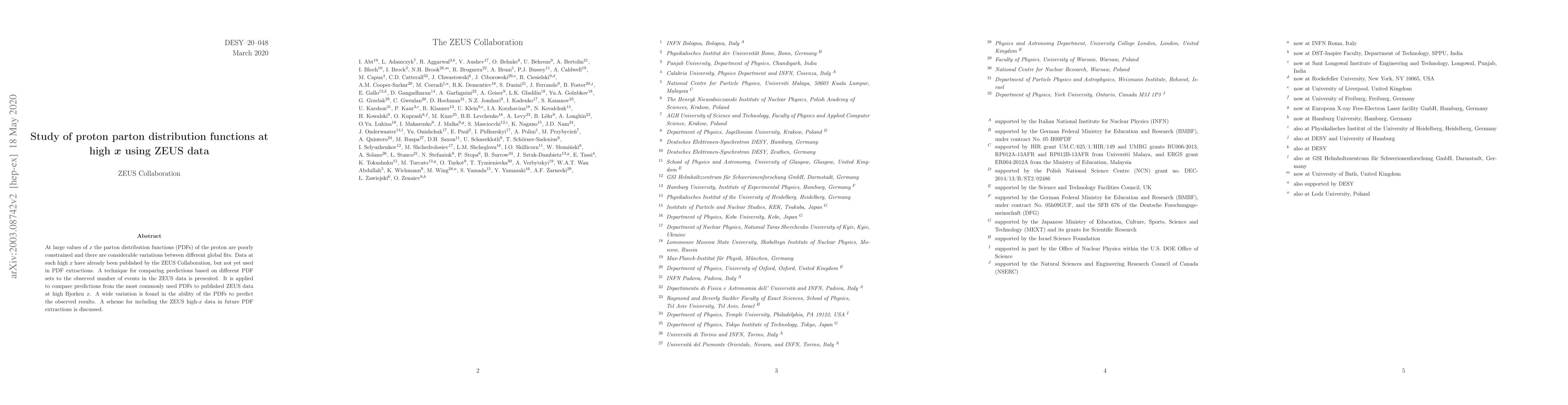 At large values of x the parton distribution functions (PDFs) of the proton are poorly constrained and there are considerable variations between different global fits. Data at such high x have already been published by the ZEUS Collaboration, but not yet used in PDF extractions. A technique for comparing predictions based on different PDF sets to the observed number of events in the ZEUS data is presented. It is applied to compare predictions from the most commonly used PDFs to published ZEUS data at high Bjorken x. A wide variation is found in the ability of the PDFs to predict the observed results. A scheme for including the ZEUS high-x data in future PDF extractions is discussed.