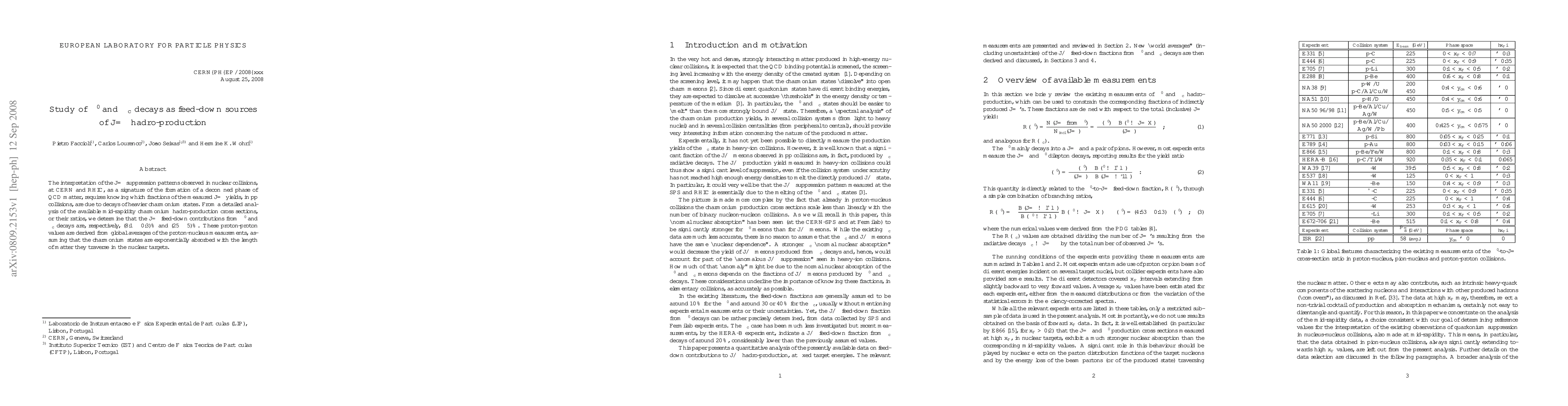 The interpretation of the J/psi suppression patterns observed in nuclear collisions, at CERN and RHIC, as a signature of the formation of a deconfined phase of QCD matter, requires knowing which fractions of the measured J/psi yields, in pp collisions, are due to decays of heavier charmonium states. From a detailed analysis of the available mid-rapidity charmonium hadro-production cross sections, or their ratios, we determine that the J/psi feed-down contributions from psi' and chi_c decays are, respectively, (8.1 +/- 0.3) % and (25 +/- 5) %. These proton-proton values are derived from global averages of the proton-nucleus measurements, assuming that the charmonium states are exponentially absorbed with the length of matter they traverse in the nuclear targets.