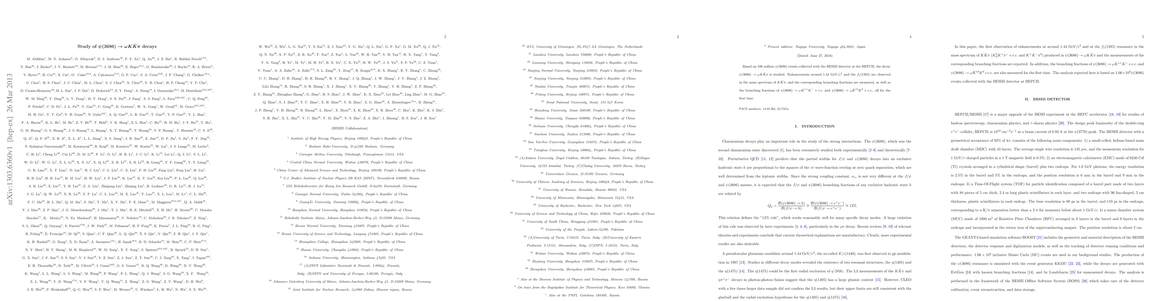 Based on 106 million $\psi(3686)$ events collected with the BESIII detector at the BEPCII, the decay $\psi(3686) \rightarrow \omega K \bar{K} \pi$ is studied. Enhancements around 1.44 GeV/$c^{2}$ and the $f_{1}(1285)$ are observed in the mass spectrum of $K \bar{K}\pi$, and the corresponding branching fractions are measured, as well as the branching fractions of $\psi(3686) \rightarrow \omega K^{*+}K^{-}+c.c.$ and $\psi(3686) \rightarrow \omega \bar{K}^{*0}K^{0}+c.c.$, all for the first time.