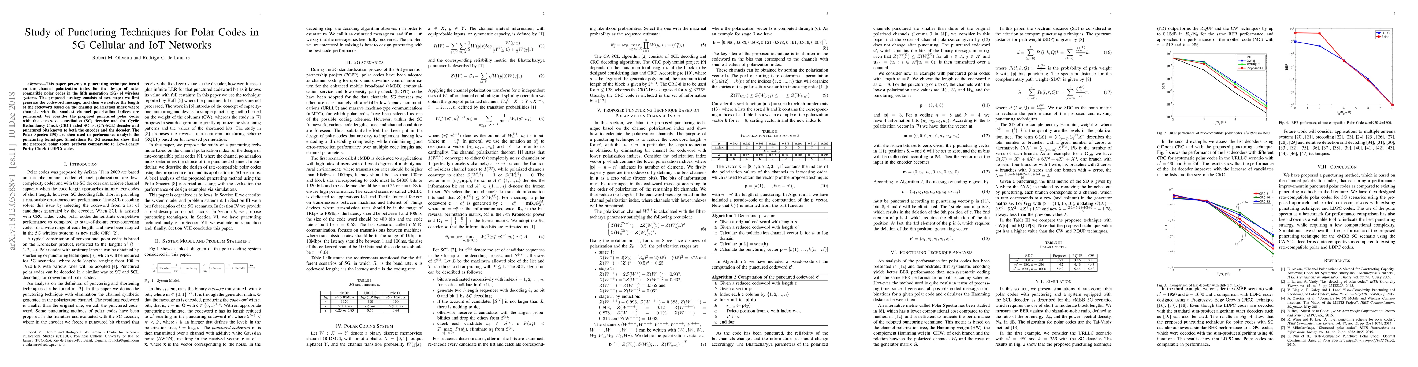 This paper proposes a puncturing technique for rate-compatible polar codes in 5G networks, puncturing channels with the smallest polarization indices to reduce codeword length. The performance is analyzed using Polar Spectra and compared to LDPC codes, showing comparable results.