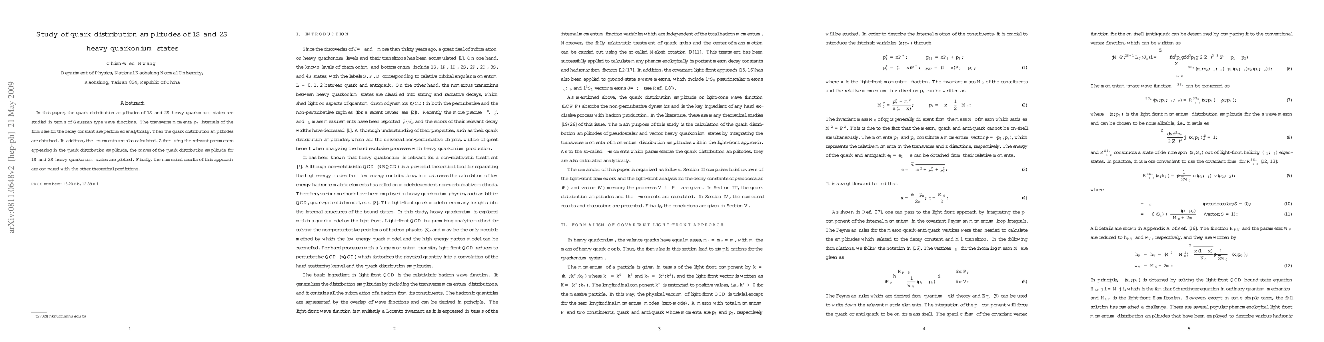 This paper investigates the quark distribution amplitudes for 1S and 2S heavy quarkonium states using Gaussian-type wave functions, analytically integrating the transverse momenta to derive the decay constants and obtain the amplitudes. The study also calculates $\xi$-moments and compares the results with other theoretical predictions.