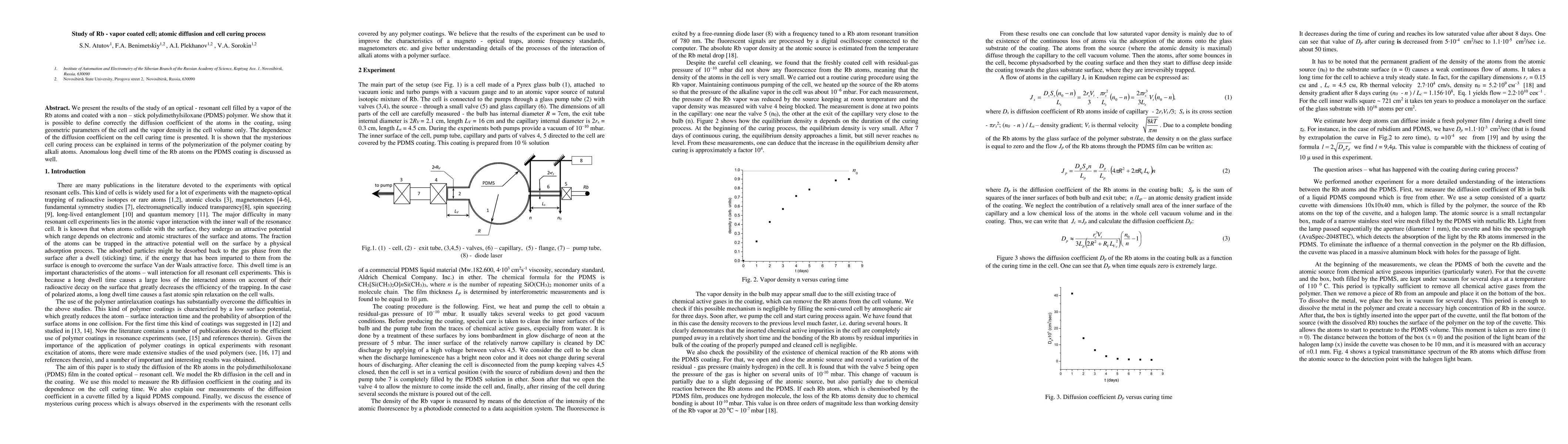 The study examines an optical resonant cell filled with Rb vapor and coated with PDMS, investigating atomic diffusion and the cell curing process through measurements of Rb vapor density over time and analysis of diffusion coefficients.