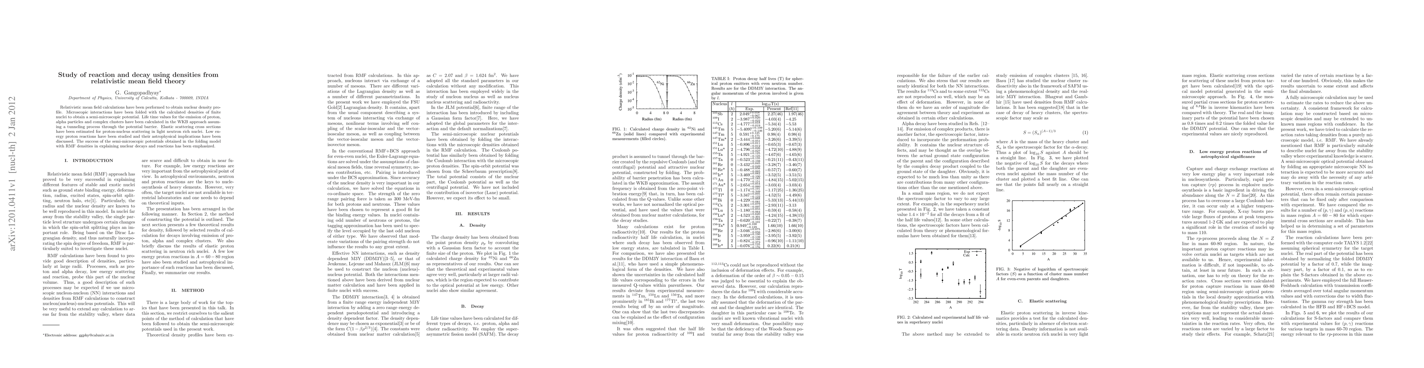 This study employs relativistic mean field theory to determine nuclear density profiles and uses these to calculate semi-microscopic potentials. It investigates decay lifetimes and elastic scattering cross sections, highlighting the model's success in explaining nuclear reactions and decays, with implications for low-energy proton reactions and astrophysics.