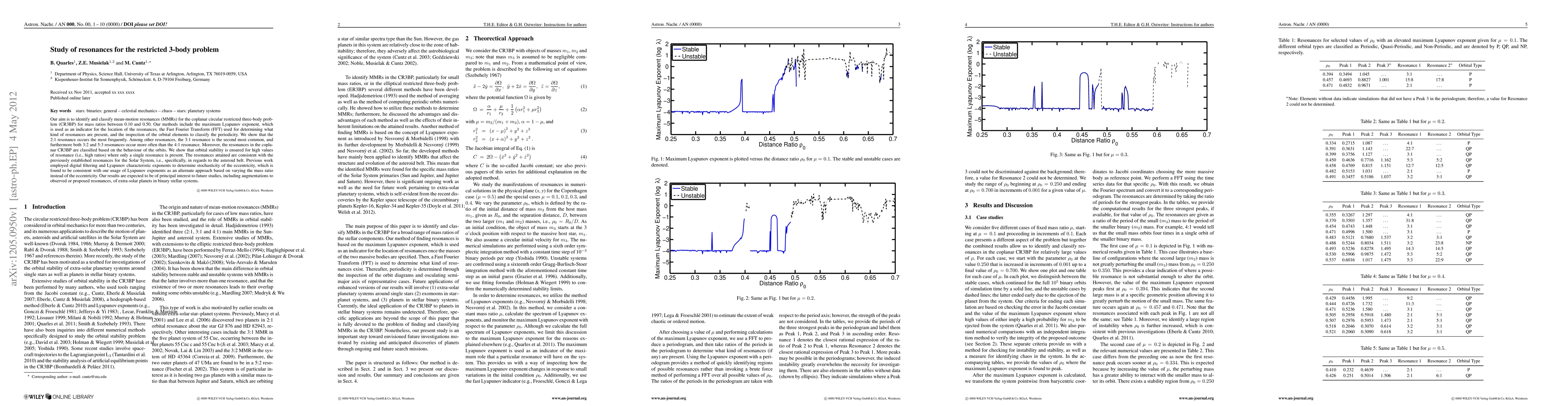 Our aim is to identify and classify mean-motion resonances (MMRs) for the coplanar circular restricted three-body problem (CR3BP) for mass ratios between 0.10 and 0.50. Our methods include the maximum Lyapunov exponent, which is used as an indicator for the location of the resonances, the Fast Fourier Transform (FFT) used for determining what kind of resonances are present, and the inspection of the orbital elements to classify the periodicity. We show that the 2:1 resonance occurs the most frequently. Among other resonances, the 3:1 resonance is the second most common, and furthermore both 3:2 and 5:3 resonances occur more often than the 4:1 resonance. Moreover, the resonances in the coplanar CR3BP are classified based on the behaviour of the orbits. We show that orbital stability is ensured for high values of resonance (i.e., high ratios) where only a single resonance is present. The resonances attained are consistent with the previously established resonances for the Solar System, i.e., specifically, in regards to the asteroid belt. Previous work employed digital filtering and Lyapunov characteristic exponents to determine stochasticity of the eccentricity, which is found to be consistent with our usage of Lyapunov exponents as an alternate approach based on varying the mass ratio instead of the eccentricity. Our results are expected to be of principal interest to future studies, including augmentations to observed or proposed resonances, of extra-solar planets in binary stellar systems.