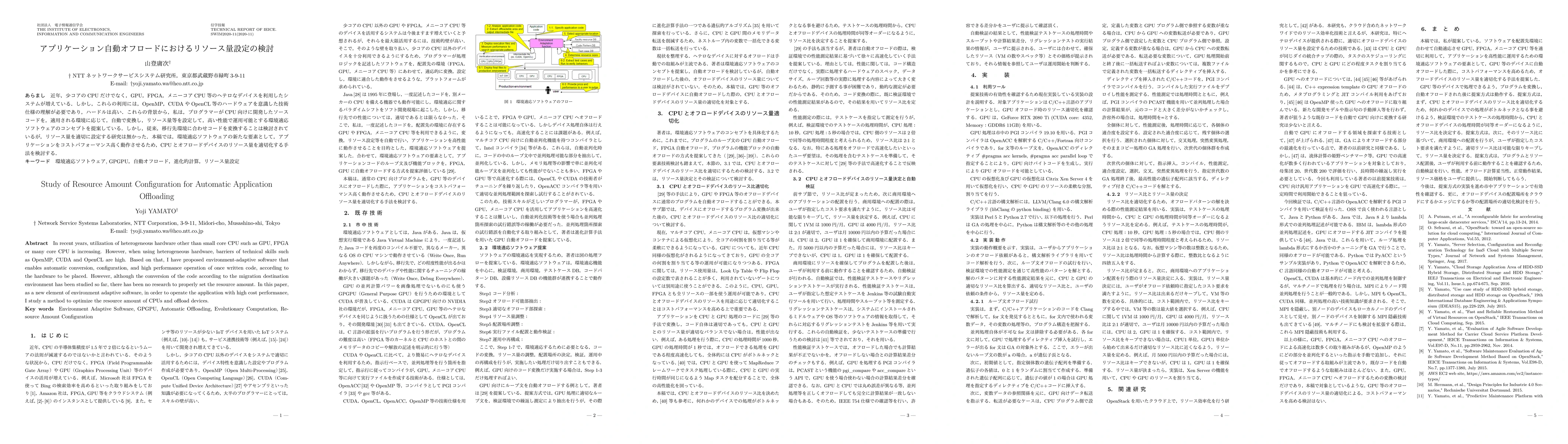 In recent years, utilization of heterogeneous hardware other than small core CPU such as GPU, FPGA or many core CPU is increasing. However, when using heterogeneous hardware, barriers of technical skills such as OpenMP, CUDA and OpenCL are high. Based on that, I have proposed environment-adaptive software that enables automatic conversion, configuration, and high performance operation of once written code, according to the hardware to be placed. However, although the conversion of the code according to the migration destination environment has been studied so far, there has been no research to properly set the resource amount. In this paper, as a new element of environment adaptive software, in order to operate the application with high cost performance, I study a method to optimize the resource amount of CPUs and offload devices.
