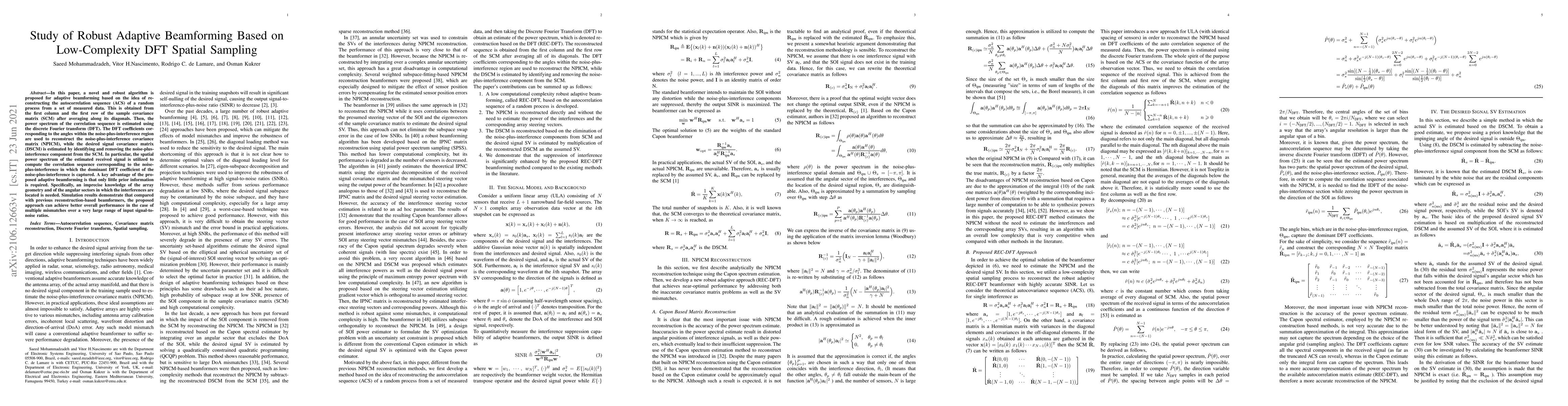 This paper proposes a novel adaptive beamforming algorithm using low-complexity DFT spatial sampling to reconstruct the autocorrelation sequence from measured data. The method achieves robust performance with minimal prior information and outperforms previous reconstruction-based beamformers in scenarios with multiple mismatches.
