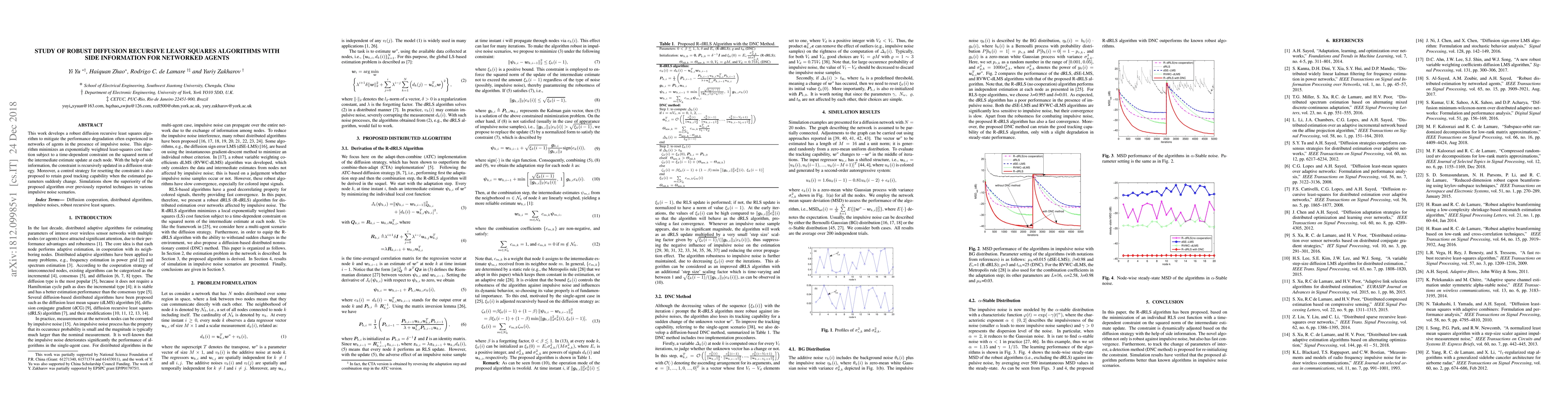A new algorithm is proposed to improve tracking in networks of agents with impulsive noise, using a recursive least squares approach with side information and constraint updates.