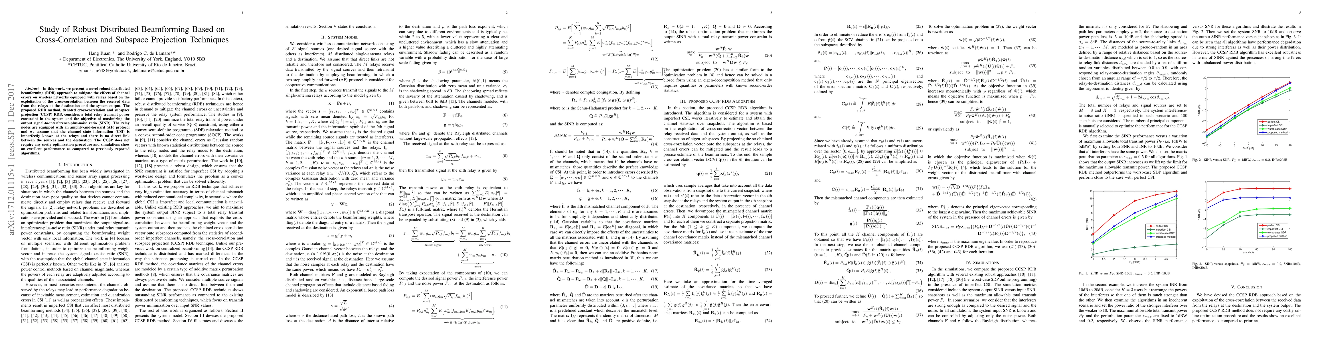 This paper introduces a novel robust distributed beamforming (RDB) method called CCSP RDB to mitigate channel errors in wireless networks with relays. The CCSP technique leverages cross-correlation and subspace projection to maximize output SINR under a relay transmit power constraint, achieving superior performance without requiring complex optimization.