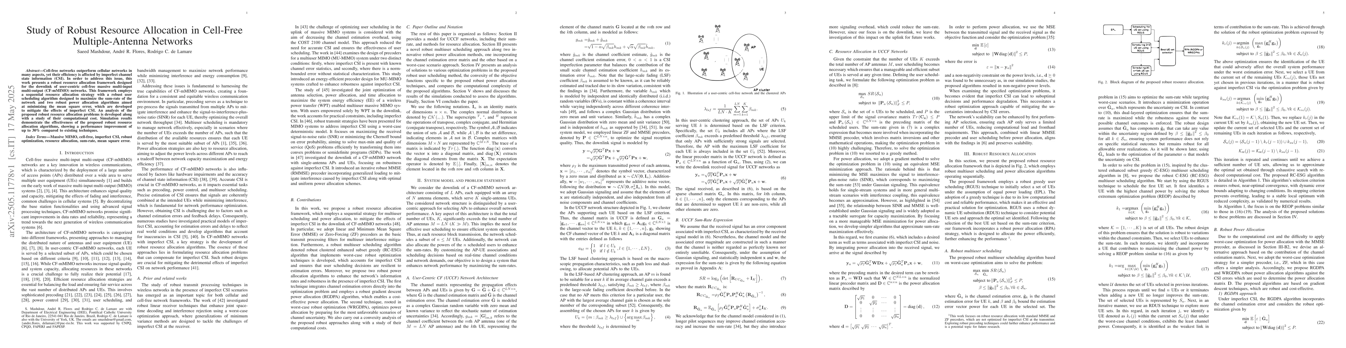A new resource allocation framework for cell-free massive MIMO networks improves network efficiency by up to 30% with robust algorithms that handle imperfect channel state information.