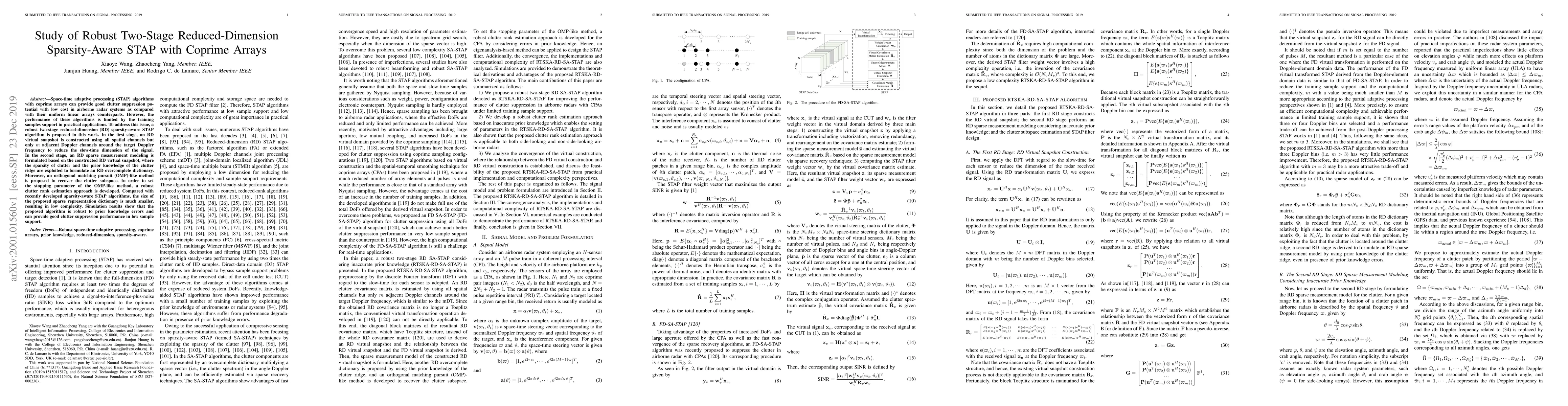 This paper proposes a robust two-stage reduced-dimension sparsity-aware STAP algorithm for coprime arrays in airborne radar systems, which constructs an RD virtual snapshot to reduce signal dimension and employs an OMP-like method for clutter subspace recovery, achieving low complexity and good clutter suppression in low sample support scenarios.