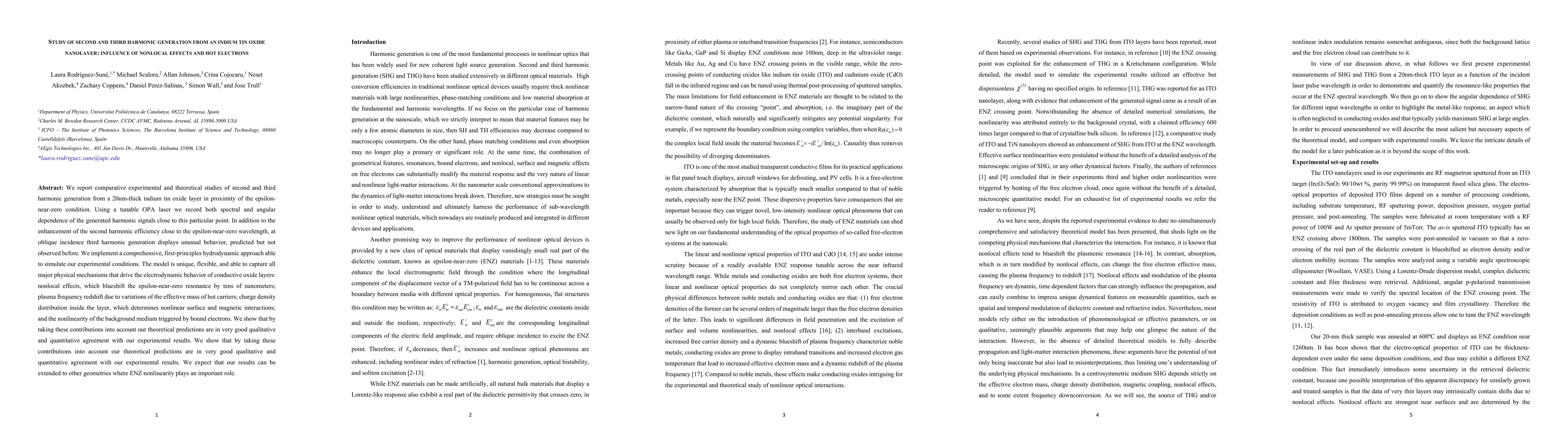 We report comparative experimental and theoretical studies of second and third harmonic generation from a 20nm-thick indium tin oxide layer in proximity of the epsilon-near-zero condition. Using a tunable OPA laser we record both spectral and angular dependence of the generated harmonic signals close to this particular point. In addition to the enhancement of the second harmonic efficiency close to the epsilon-near-zero wavelength, at oblique incidence third harmonic generation displays unusual behavior, predicted but not observed before. We implement a comprehensive, first-principles hydrodynamic approach able to simulate our experimental conditions. The model is unique, flexible, and able to capture all major physical mechanisms that drive the electrodynamic behavior of conductive oxide layers: nonlocal effects, which blueshift the epsilon-near-zero resonance by tens of nanometers; plasma frequency redshift due to variations of the effective mass of hot carriers; charge density distribution inside the layer, which determines nonlinear surface and magnetic interactions; and the nonlinearity of the background medium triggered by bound electrons. We show that by taking these contributions into account our theoretical predictions are in very good qualitative and quantitative agreement with our experimental results. We show that by taking these contributions into account our theoretical predictions are in very good qualitative and quantitative agreement with our experimental results. We expect that our results can be extended to other geometries where ENZ nonlinearity plays an important role.