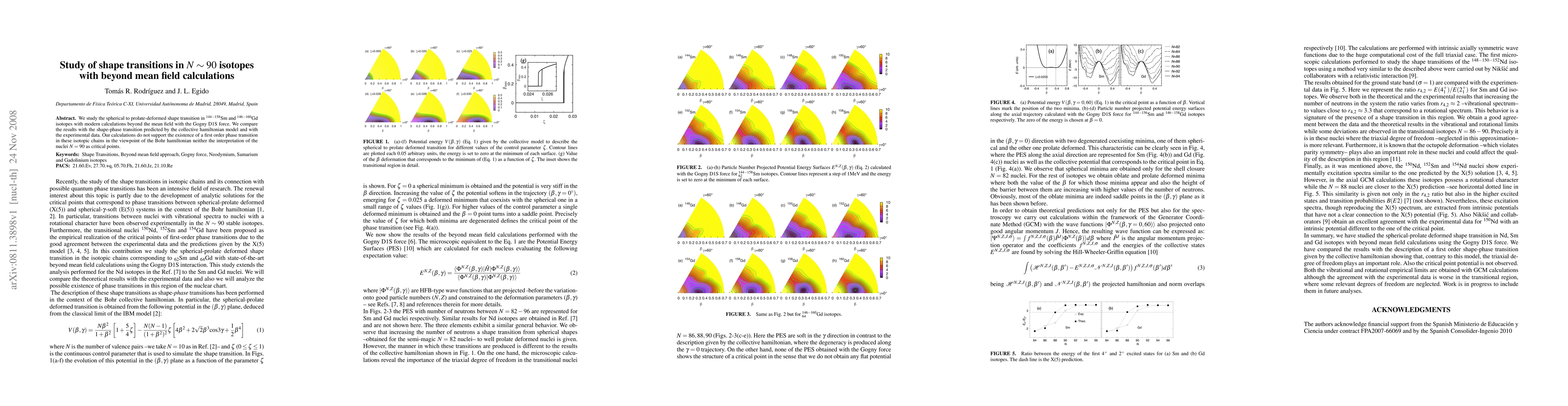 This study investigates the shape transitions in $N\sim90$ isotopes using beyond mean field calculations with the Gogny D1S force, finding no support for a first-order phase transition or the nuclei N=90 as critical points in the $^{144-158}$Sm and $^{146-160}$Gd isotopic chains. Results are compared with collective Hamiltonian models and experimental data.
