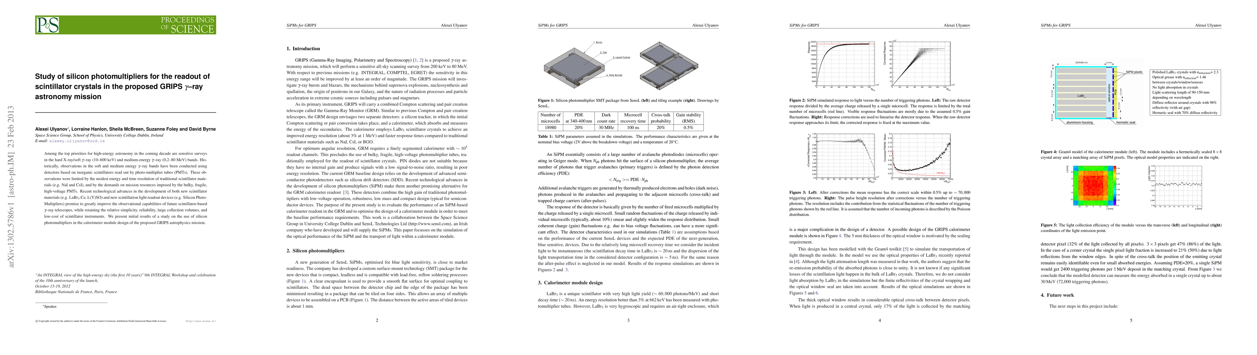 This study investigates the use of silicon photomultipliers (SiPMs) for reading out scintillator crystals in the proposed GRIPS gamma-ray astronomy mission, aiming to enhance the energy and time resolution of scintillator-based gamma-ray telescopes. Initial results suggest SiPMs could improve observational capabilities while maintaining the benefits of scintillator instruments.