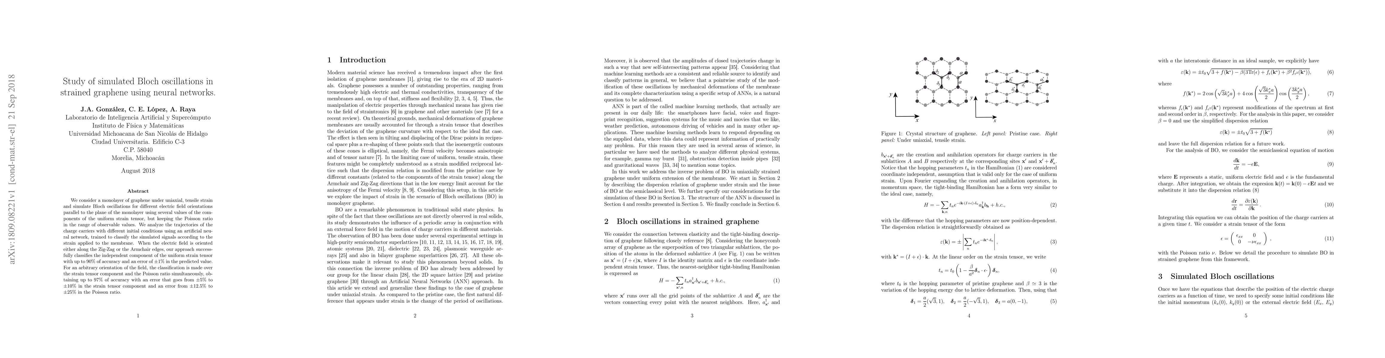 Researchers used neural networks to simulate Bloch oscillations in strained graphene and achieved up to 97% accuracy in classifying strain components with varying electric field orientations.