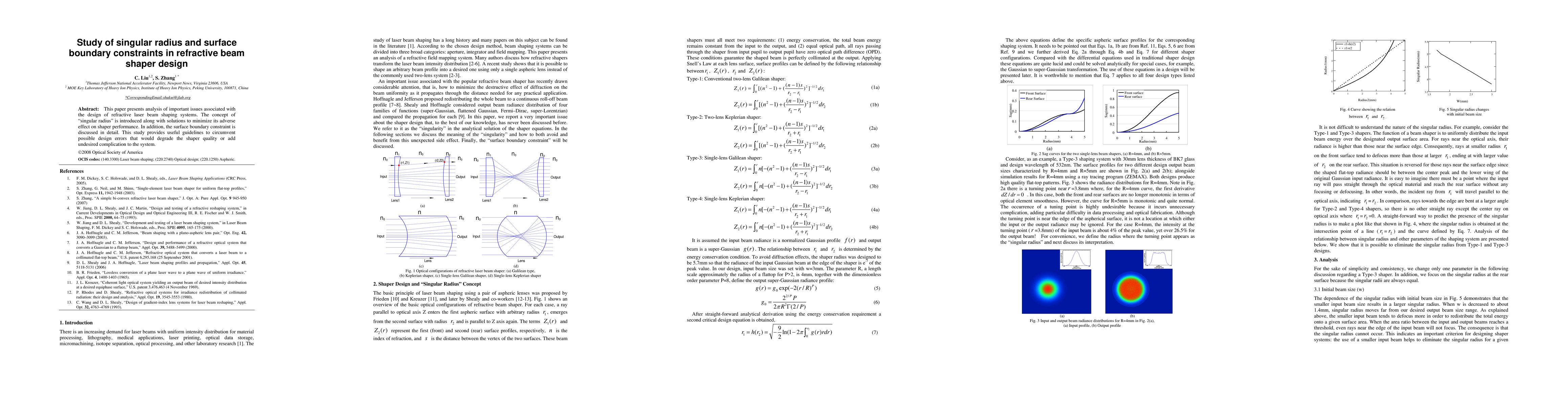 This paper analyzes design constraints for refractive beam shapers to improve performance and minimize errors. It introduces solutions to address singular radius issues and provides guidelines to enhance shaper quality and system reliability.