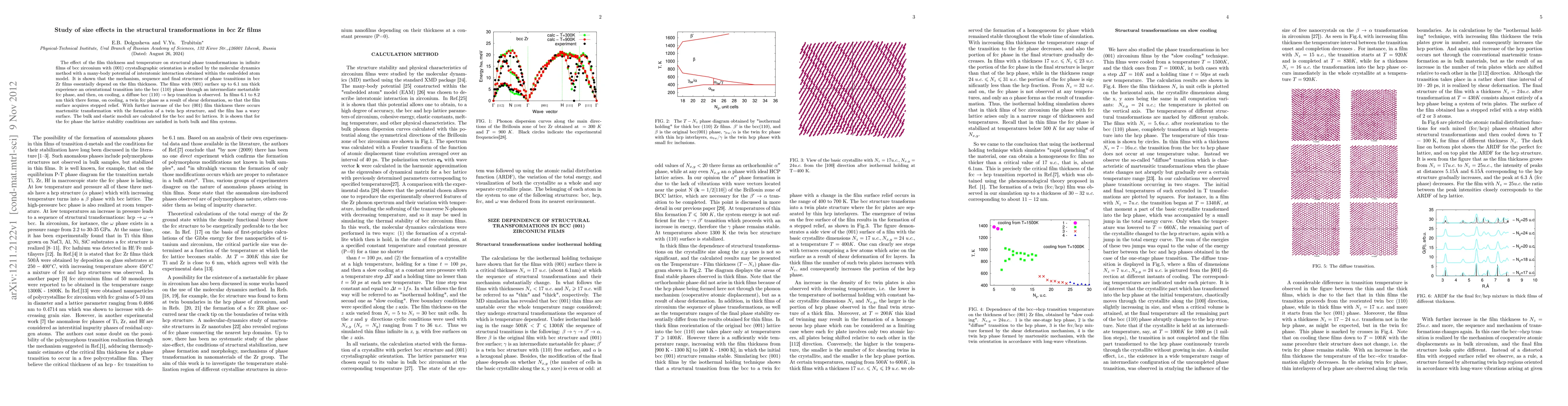 This study investigates the impact of film thickness and temperature on structural phase transformations in bcc zirconium films using molecular dynamics. It reveals that film thickness significantly influences the phase transition mechanism, with different phases forming at varying thicknesses, including bcc, fcc, and hcp phases.