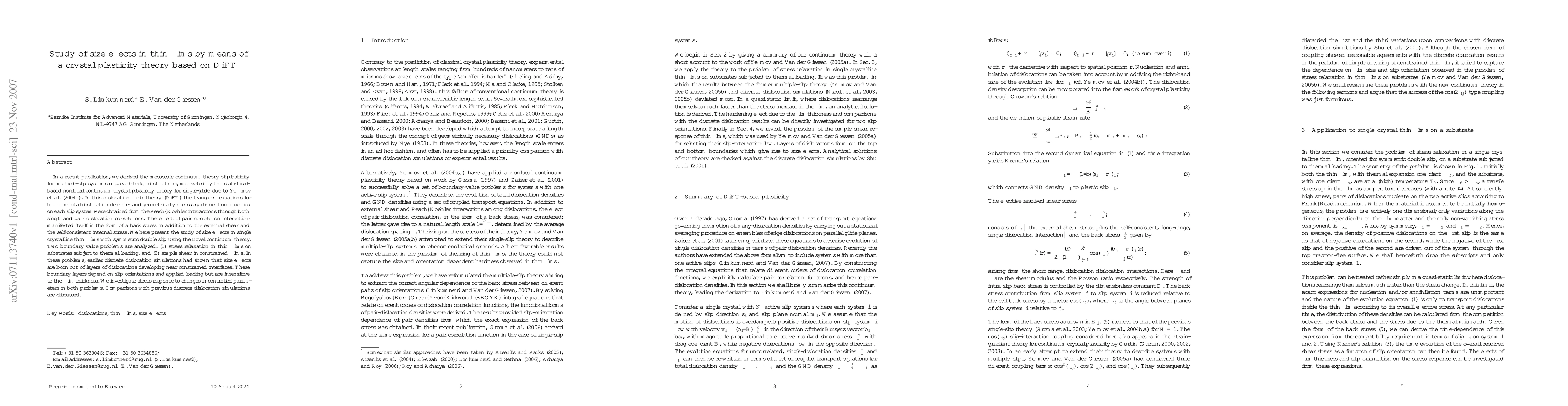 In a recent publication, we derived the mesoscale continuum theory of plasticity for multiple-slip systems of parallel edge dislocations, motivated by the statistical-based nonlocal continuum crystal plasticity theory for single-glide due to Yefimov et al. (2004b). In this dislocation field theory (DiFT) the transport equations for both the total dislocation densities and geometrically necessary dislocation densities on each slip system were obtained from the Peach-Koehler interactions through both single and pair dislocation correlations. The effect of pair correlation interactions manifested itself in the form of a back stress in addition to the external shear and the self-consistent internal stress. We here present the study of size effects in single crystalline thin films with symmetric double slip using the novel continuum theory. Two boundary value problems are analyzed: (1) stress relaxation in thin films on substrates subject to thermal loading, and (2) simple shear in constrained films. In these problems, earlier discrete dislocation simulations had shown that size effects are born out of layers of dislocations developing near constrained interfaces. These boundary layers depend on slip orientations and applied loading but are insensitive to the film thickness. We investigate stress response to changes in controlled parameters in both problems. Comparisons with previous discrete dislocation simulations are discussed.