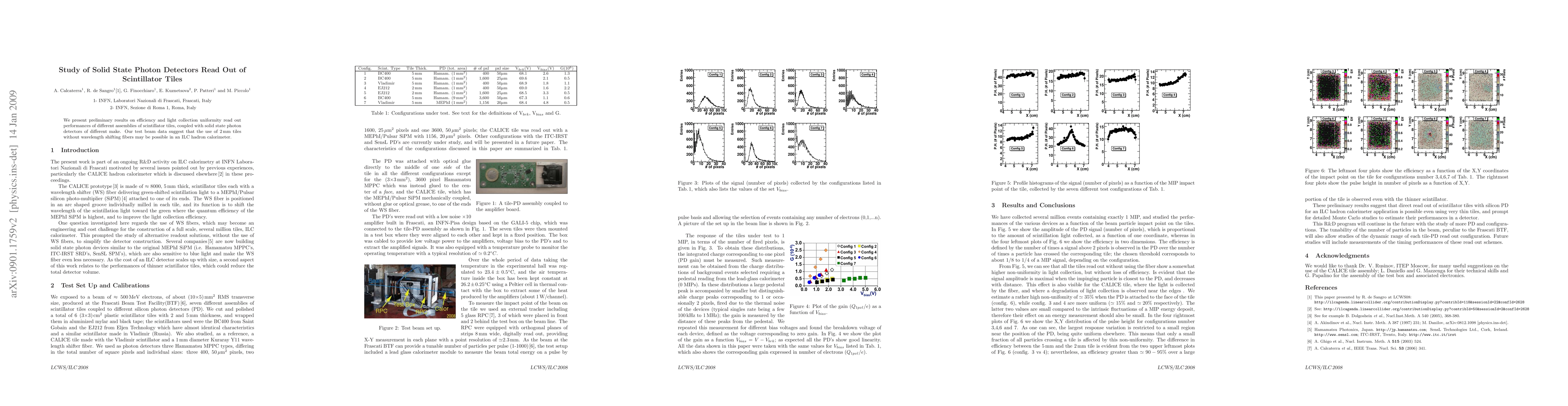 Two-line summary: This study evaluates the efficiency and uniformity of various scintillator tile assemblies coupled with solid state photon detectors. Preliminary results indicate that 2 mm scintillator tiles without wavelength shifting fibers could be viable for the ILC hadron calorimeter.