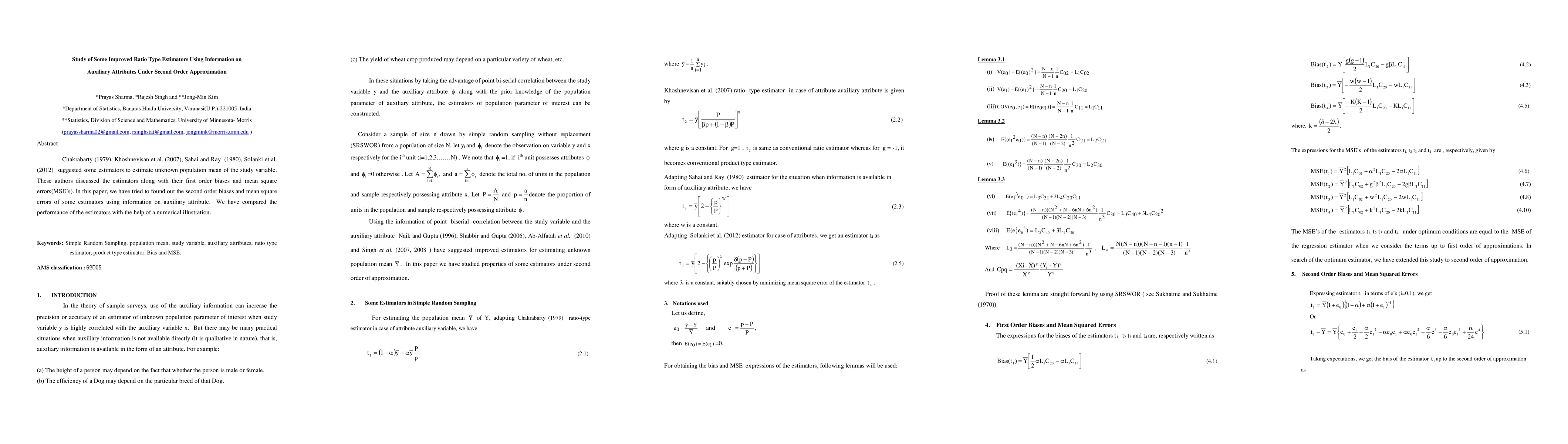 Researchers studied improved estimators for estimating population means with second-order approximation using auxiliary attributes. They found biases and mean square errors for the estimators in a numerical illustration.