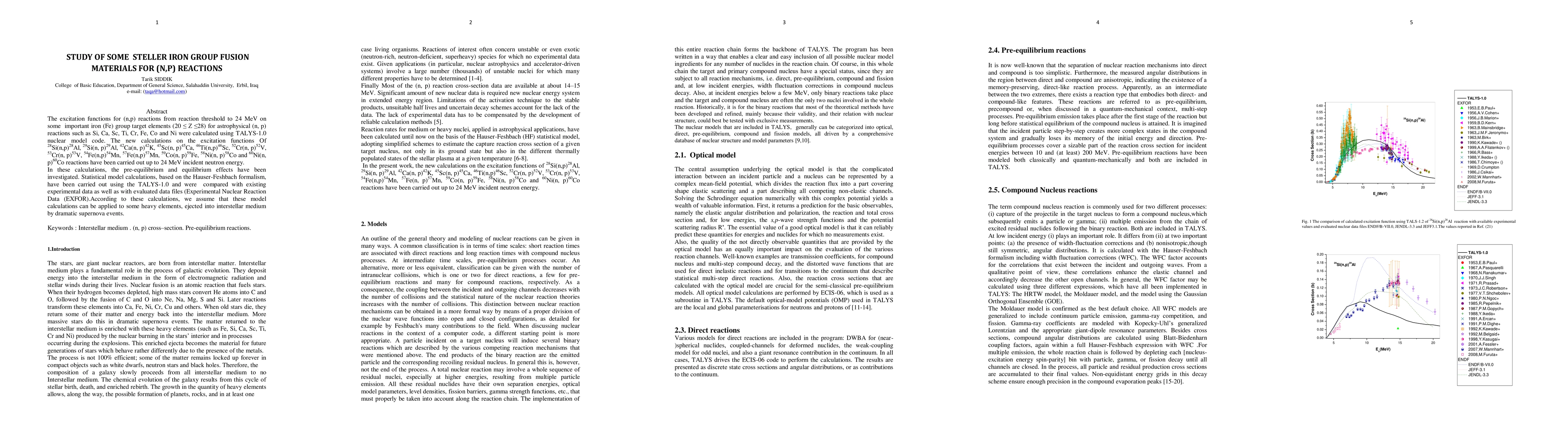 This study investigates the excitation functions for (n,p) reactions in iron group elements (Si, Ca, Sc, Ti, Cr, Fe, Co, and Ni) using the TALYS-1.0 nuclear model code, focusing on astrophysical implications. The calculations compare theoretical results with existing experimental and evaluated data, suggesting potential applications for heavy elements ejected by supernova events.