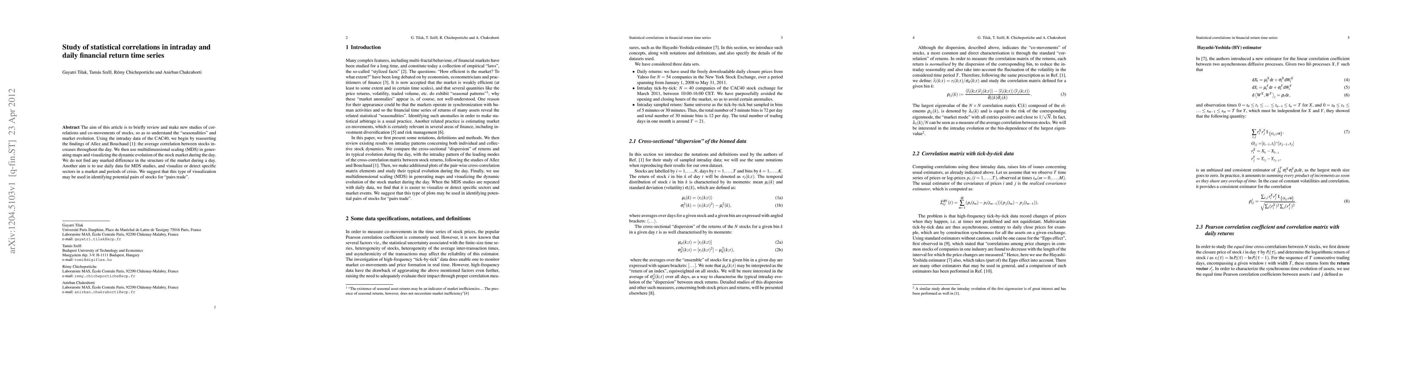 This paper reviews statistical correlations in intraday and daily financial return time series, focusing on the CAC40 stocks. It reaffirms the increasing intraday correlation and uses multidimensional scaling to visualize market dynamics, finding no significant daily structural changes. It also explores daily data for sector-specific insights and crisis detection, suggesting potential for "pairs trade" identification.