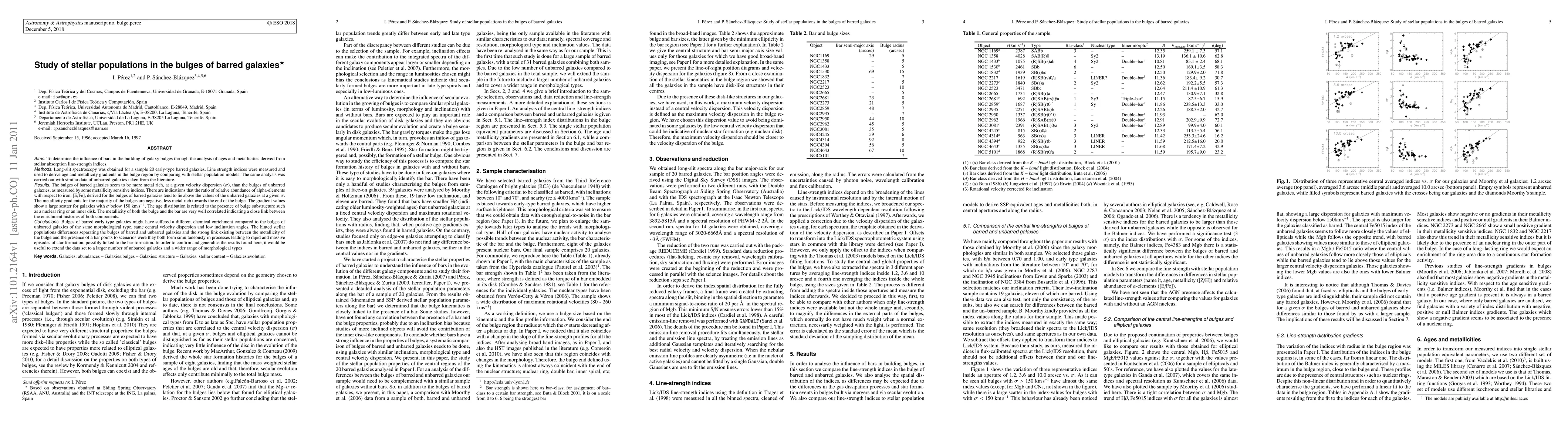 This study investigates the stellar populations in the bulges of barred galaxies using long-slit spectroscopy, finding that barred galaxies have more metal-rich bulges compared to unbarred ones at similar velocity dispersions. The research suggests that barred galaxies experienced different chemical enrichment histories, potentially linked to simultaneous bar and bulge formation processes.