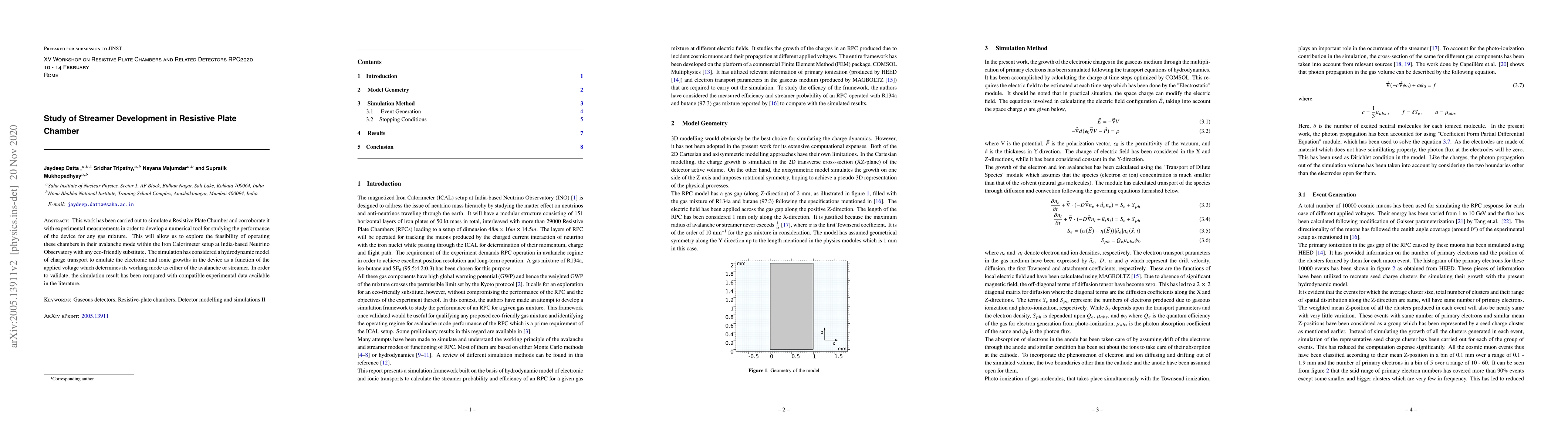 This work has been carried out to simulate a Resistive Plate Chamber and corroborate it with experimental measurements in order to develop a numerical tool for studying the performance of the device for any gas mixture. This will allow us to explore the feasibility of operating these chambers in their avalanche mode within the Iron Calorimeter setup at India-based Neutrino Observatory with any eco-friendly substitute. The simulation has considered a hydrodynamic model of charge transport to emulate the electronic and ionic growths in the device as a function of the applied voltage which determines its working mode as either of the avalanche or streamer. In order to validate, the simulation result has been compared with compatible experimental data available in the literature.