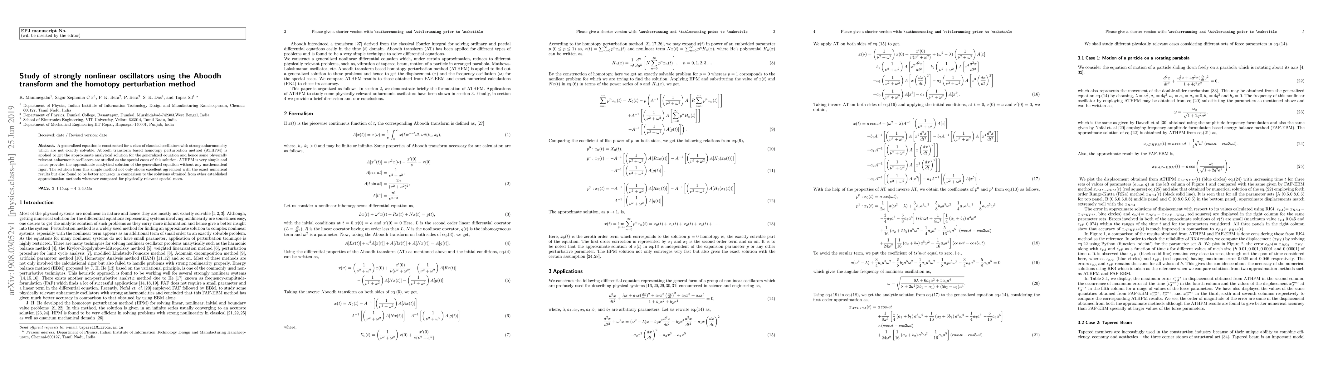 A generalized equation is constructed for a class of classical oscillators with strong anharmonicity which are not exactly solvable. Aboodh transform based homotopy perturbation method (ATHPM) is applied to get the approximate analytical solution for the generalized equation and hence some physically relevant anharmonic oscillators are studied as the special cases of this solution. ATHPM is very simple and hence provides the approximate analytical solution of the generalized equation without any mathematical rigor. The solution from this simple method not only shows excellent agreement with the exact numerical results but also found to be better accuracy in comparison to the solutions obtained from other established approximation methods whenever compared for physically relevant special cases.