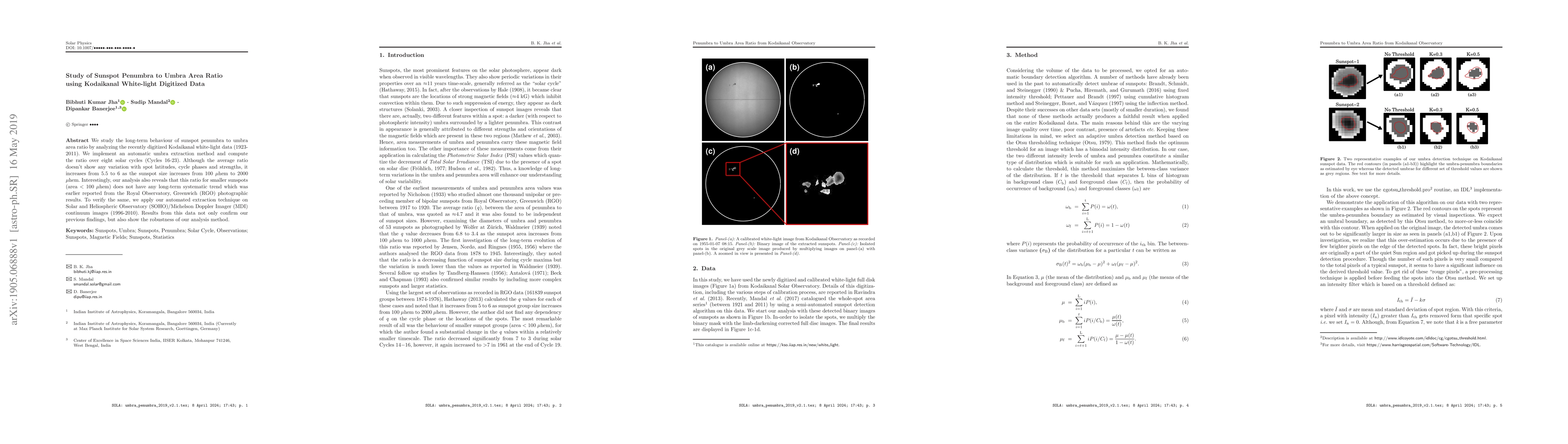 This study analyzes the long-term sunspot penumbra to umbra area ratio using Kodaikanal white-light digitized data from 1923-2011, finding no variation with solar cycle parameters but an increase from 5.5 to 6 as sunspot size grows. Verification with SOHO/MDI data confirms the findings and validates the extraction method.