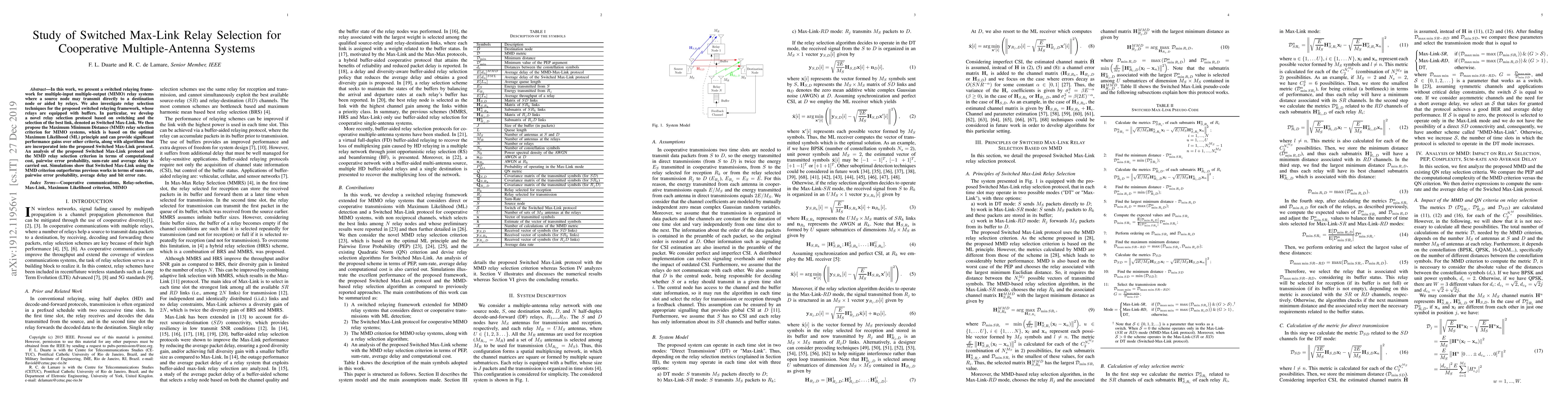 This paper introduces a switched relaying framework for MIMO cooperative systems, proposing a novel Switched Max-Link relay selection protocol and the Maximum Minimum Distance (MMD) criterion for optimal performance. Simulation results demonstrate superior sum-rate, error probability, delay, and bit error rate compared to existing methods.