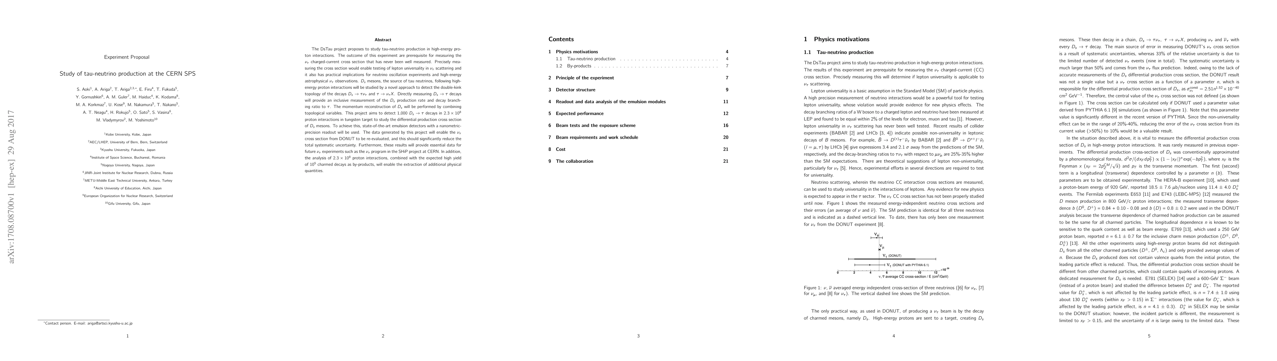 The DsTau project proposes to study tau-neutrino production in high-energy proton interactions. The outcome of this experiment are prerequisite for measuring the $\nu_\tau$ charged-current cross section that has never been well measured. Precisely measuring the cross section would enable testing of lepton universality in $\nu_\tau$ scattering and it also has practical implications for neutrino oscillation experiments and high-energy astrophysical $\nu_\tau$ observations. $D_s$ mesons, the source of tau neutrinos, following high-energy proton interactions will be studied by a novel approach to detect the double-kink topology of the decays $D_s \rightarrow \tau\nu_\tau$ and $\tau\rightarrow\nu_\tau X$. Directly measuring $D_s\rightarrow \tau$ decays will provide an inclusive measurement of the $D_s$ production rate and decay branching ratio to $\tau$. The momentum reconstruction of $D_s$ will be performed by combining topological variables. This project aims to detect 1,000 $D_s \rightarrow \tau$ decays in $2.3 \times 10^8$ proton interactions in tungsten target to study the differential production cross section of $D_s$ mesons. To achieve this, state-of-the-art emulsion detectors with a nanometric-precision readout will be used. The data generated by this project will enable the $\nu_\tau$ cross section from DONUT to be re-evaluated, and this should significantly reduce the total systematic uncertainty. Furthermore, these results will provide essential data for future $\nu_\tau$ experiments such as the $\nu_\tau$ program in the SHiP project at CERN. In addition, the analysis of $2.3 \times 10^8$ proton interactions, combined with the expected high yield of $10^5$ charmed decays as by-products, will enable the extraction of additional physical quantities.