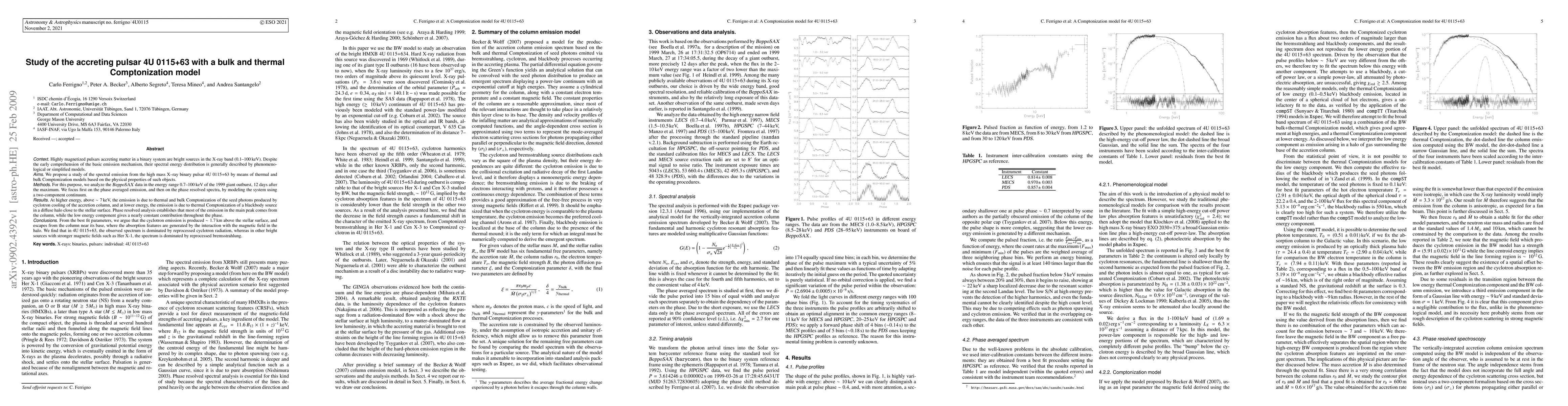 Highly magnetized pulsars accreting matter in a binary system are bright sources in the X-ray band (0.1-100 keV). Despite the early comprehension of the basic emission mechanism, their spectral energy distribution is generally described by phenomenological or simplified models. We propose a study of the spectral emission from the high mass X-ray binary pulsar 4U 0115+634 by means of thermal and bulk Comptonization models based on the physical properties of such objects. For this purpose, we analyze the BeppoSAX data in the energy range 0.7-100 keV of the 1999 giant outburst, 12 days after the maximum. We model the spectral energy distribution of the system using a two-component continuum. At higher energy, above ~7 keV, the emission is due to thermal and bulk Comptonization of the seed photons produced by cyclotron cooling of the accretion column, and at lower energy, the emission is due to thermal Comptonization of a blackbody source in a diffuse halo close to the stellar surface. From the best fit parameters, we argue that the cyclotron emission is produced ~1.7 km above the stellar surface, and escapes from the column near its base, where the absorption features are generated by the interaction with the magnetic field in a surrounding halo. We find that in 4U 0115+634, the observed spectrum is dominated by reprocessed cyclotron radiation, whereas in other bright sources with stronger magnetic fields such as Her X-1, the spectrum is dominated by reprocessed bremsstrahlung.