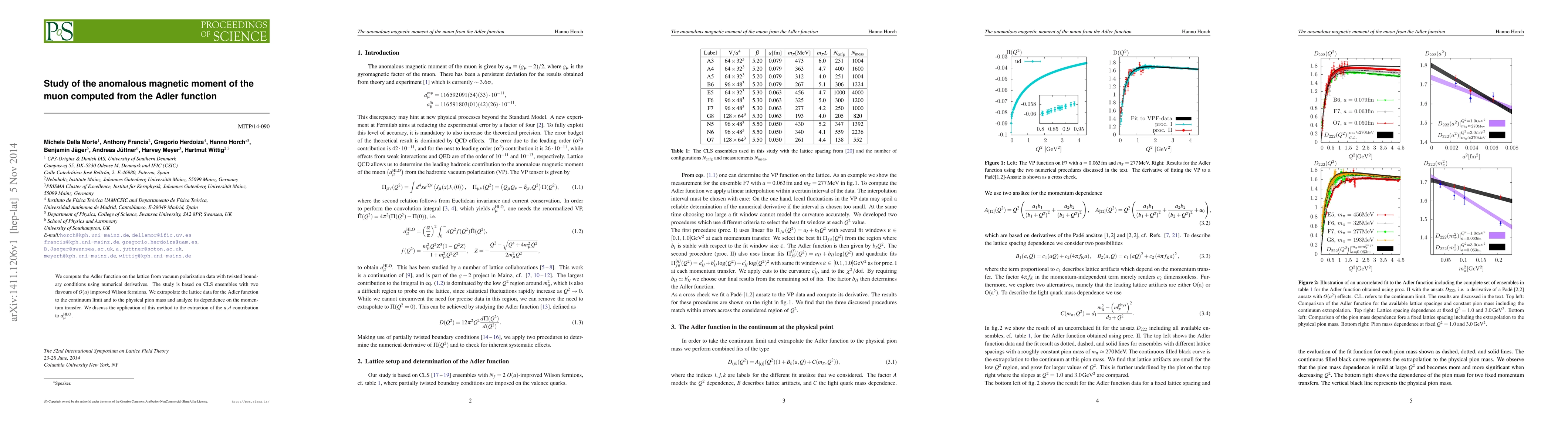 This paper computes the Adler function on the lattice using twisted boundary conditions and numerical derivatives, based on CLS ensembles with improved Wilson fermions. The study extrapolates the results to the continuum limit and physical pion mass, aiming to extract the $u,d$ contribution to the anomalous magnetic moment of the muon.