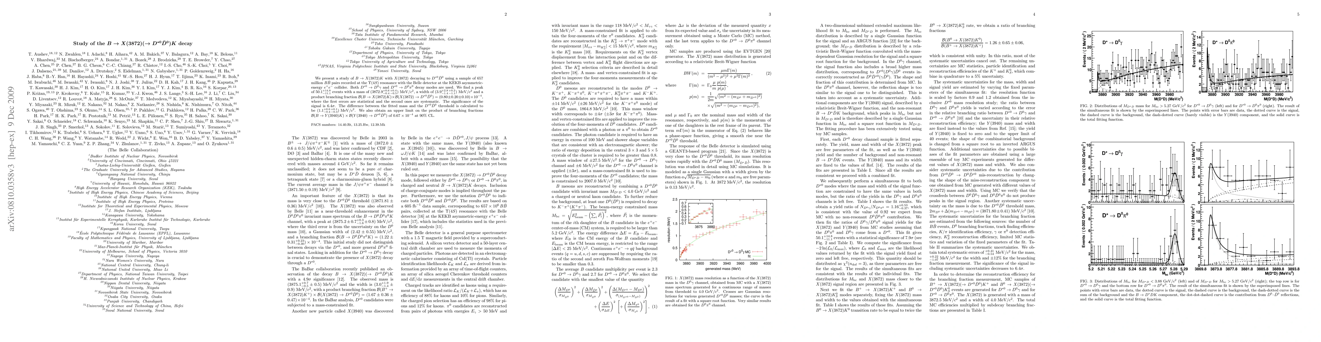 This study investigates the decay $B\to X(3872)K$ with $X(3872)$ decaying to $D^{*0}\bar D^0$ using data from the Belle detector, finding a peak corresponding to $X(3872)$ with a mass of $3872.9\pm0.6\pm0.4$ MeV/c$^2$ and a branching fraction of $(0.80\pm0.20\pm0.10)\times10^{-4}$. The signal is significant at $6.4\sigma$.