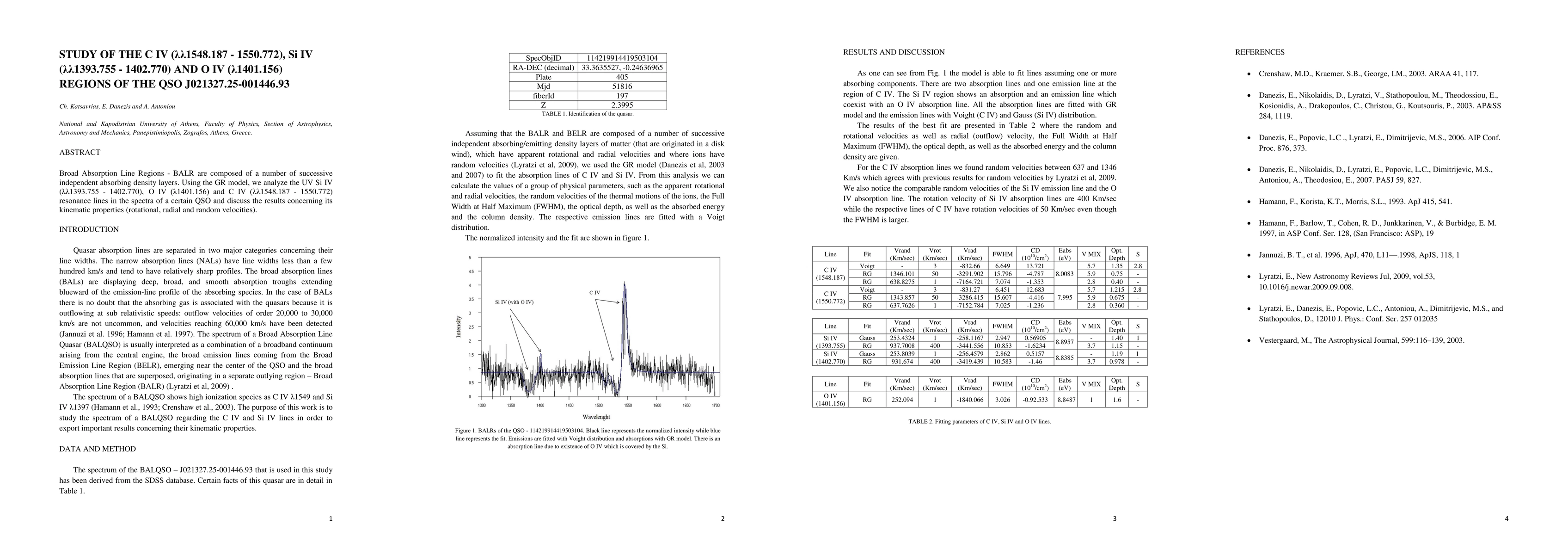 Broad Absorption Line Regions - BALR are composed of a number of successive independent absorbing density layers. Using the GR model, we analyze the UV Si IV ({\lambda}{\lambda}1393.755 - 1402.770), O IV ({\lambda}1401.156) and C IV ({\lambda}{\lambda}1548.187 - 1550.772) resonance lines in the spectra of a certain QSO and discuss the results concerning its kinematic properties (rotational, radial and random velocities).