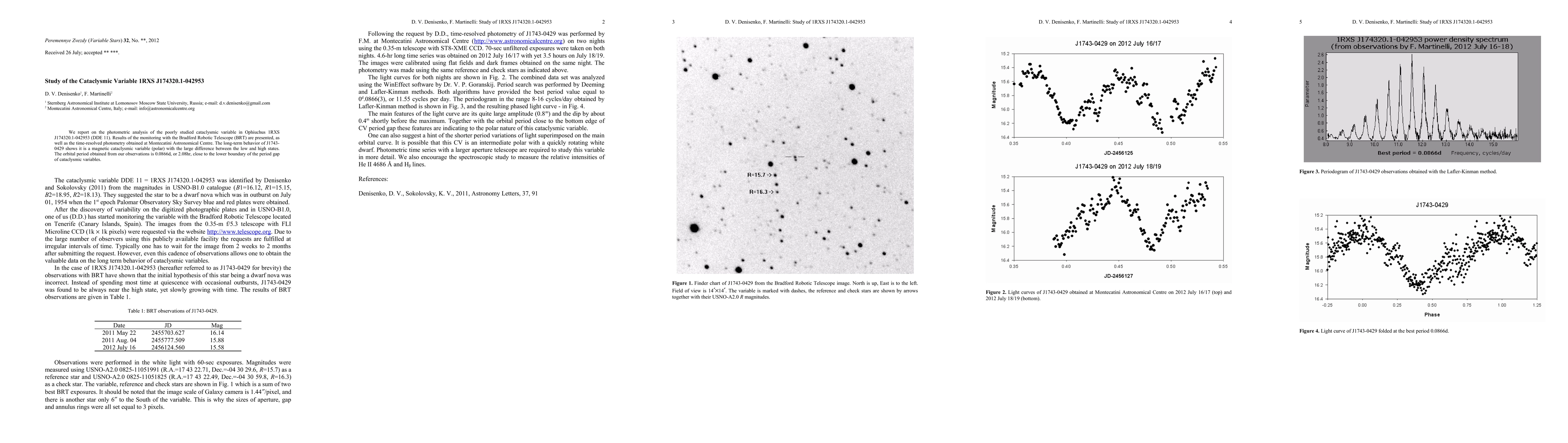 We report on the photometric analysis of the poorly studied cataclysmic variable in Ophiuchus 1RXS J174320.1-042953 (DDE 11). Results of the monitoring with the Bradford Robotic Telescope (BRT) are presented, as well as the time-resolved photometry obtained at Montecatini Astronomical Centre. The long-term behavior of J1743-0429 shows it is a magnetic cataclysmic variable (polar) with the large difference between the low and high states. The orbital period obtained from our observations is 0.0866d, or 2.08hr, close to the lower boundary of the period gap of cataclysmic variables.