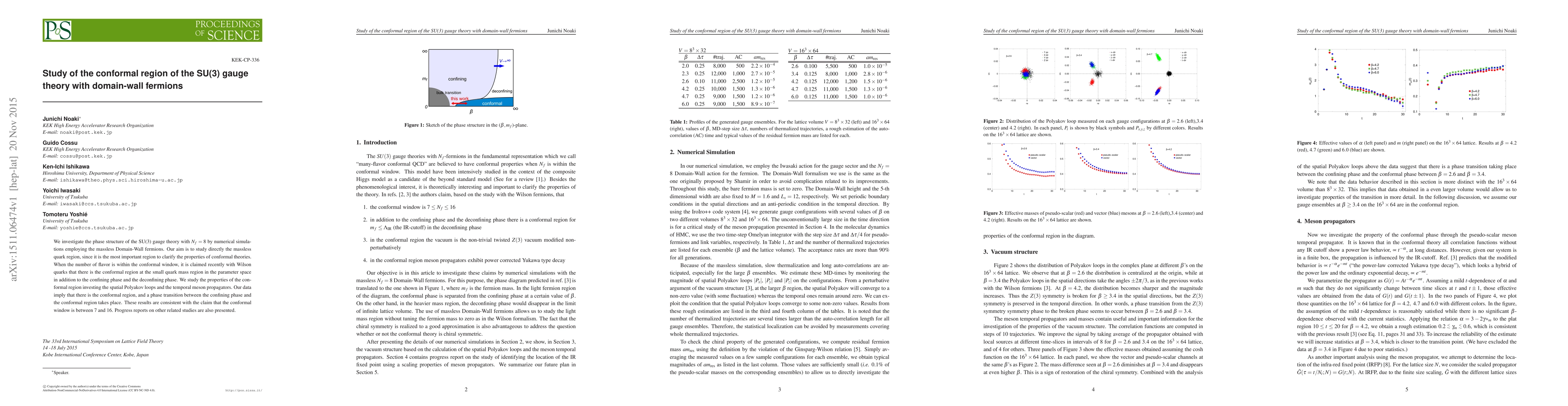 We investigate the phase structure of the SU(3) gauge theory with $N_f=8$ by numerical simulations employing the massless Domain-Wall fermions.Our aim is to study directly the massless quark region, since it is the most important region to clarify the properties of conformal theories. When the number of flavor is within the conformal window, it is claimed recently with Wilson quarks that there is the conformal region at the small quark mass region in the parameter space in addition to the confining phase and the deconfining phase. We study the properties of the conformal region investing the spatial Polyakov loops and the temporal meson propagators. Our data imply that there is the conformal region, and a phase transition between the confining phase and the conformal region takes place. These results are consistent with the claim that the conformal window is between $7$ and $16$. Progress reports on other related studies are also presented.