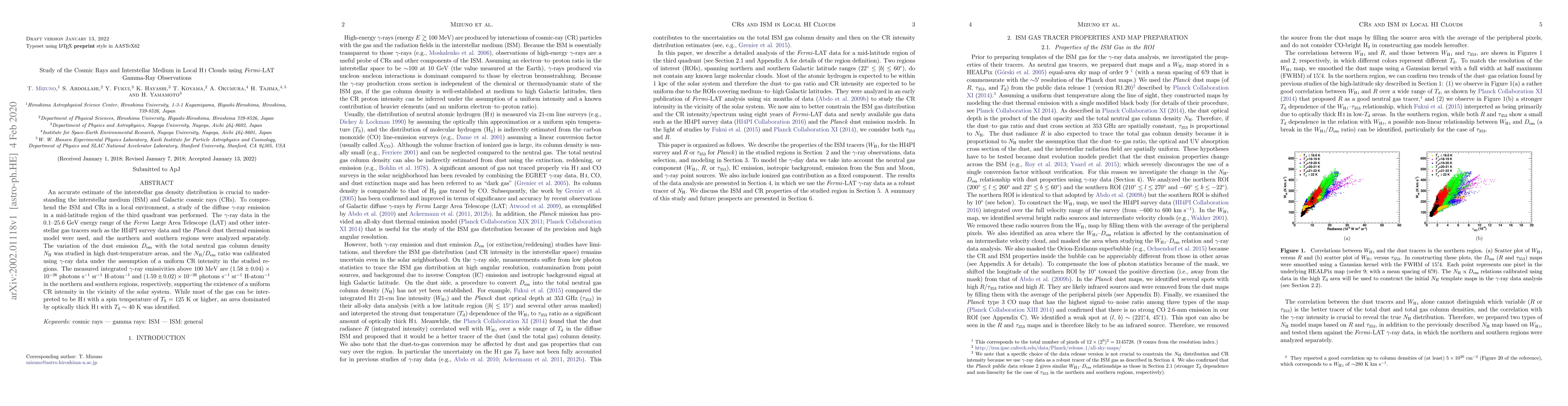 This study uses Fermi-LAT gamma-ray observations to analyze the interstellar medium and cosmic rays in local HI clouds, finding a uniform cosmic ray intensity in the solar neighborhood. The analysis of gamma-ray emissivities supports the presence of a consistent cosmic ray distribution, while identifying regions with different HI spin temperatures.