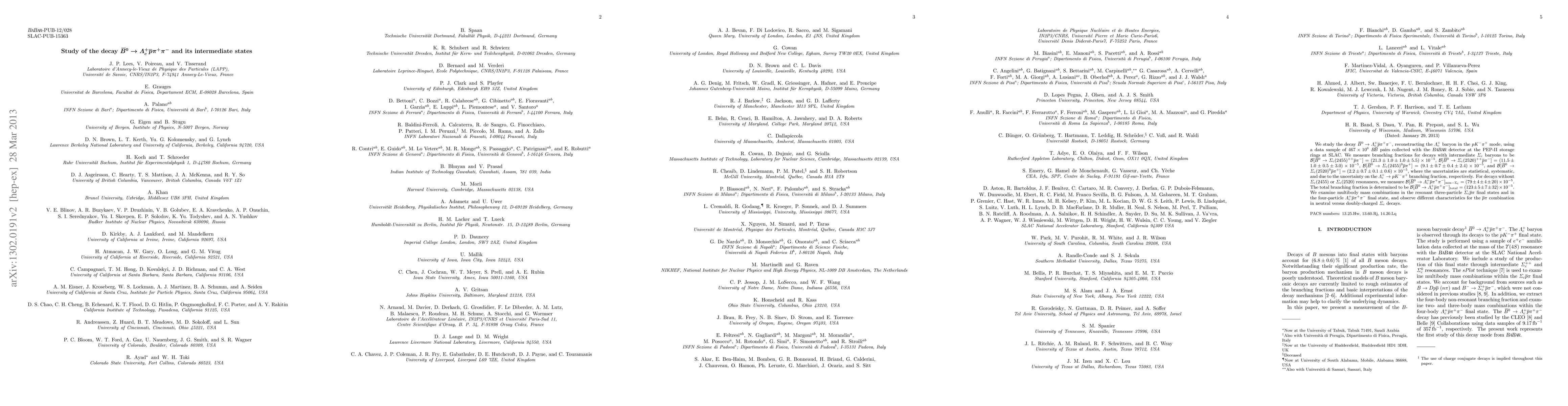 We study the decay $\bar{B}^{0}\rightarrow\Lambda_{c}^{+}\bar{p}\pi^{+}\pi^{-}$, reconstructing the \Lambda_{c}^{+} baryon in the $p K^{-}\pi^{+}$ mode, using a data sample of $467\times 10^{6}$ $B\bar{B}$ pairs collected with the BaBar detector at the PEP-2 storage rings at SLAC. We measure branching fractions for decays with intermediate $\Sigma_{c}$ baryons to be ${\cal B}[\bar{B}^{0}\rightarrow\Sigma_{c}(2455)^{++}\bar{p}\pi^{-}]=(21.3 \pm 1.0 \pm 1.0 \pm 5.5) \times 10^{-5}$, ${\cal B}[\bar{B}^{0}\rightarrow\Sigma_{c}(2520)^{++}\bar{p}\pi^{-}]=(11.5\pm 1.0 \pm 0.5 \pm 3.0)\times 10^{-5}$, ${\cal B}[\bar{B}^{0}\rightarrow\Sigma_{c}(2455)^{0}\bar{p}\pi^{+}]=(9.1 \pm 0.7 \pm 0.4 \pm 2.4)\times10^{-5}$, and ${\cal B}[\bar{B}^{0}\rightarrow\Sigma_{c}(2520)^{0}\bar{p}\pi^{+}]= (2.2 \pm 0.7 \pm 0.1\pm 0.6) \times 10^{-5}$, where the uncertainties are statistical, systematic, and due to the uncertainty on the $\Lambda_{c}^{+}\rightarrow\proton\Km\pi^{+}$ branching fraction, respectively. For decays without $\Sigma_{c}(2455)$ or $\Sigma_{c}(2520)$ resonances, we measure ${\cal B}[\bar{B}^{0}\rightarrow\Lambda_{c}^{+}\bar{p}\pi^{+}\pi^{-}]_{\mathrm{non-\Sigma_{c}}}=(79 \pm 4 \pm 4 \pm 20)\times10^{-5}$. The total branching fraction is determined to be ${\cal B}[\bar{B}^{0}\rightarrow\Lambda_{c}^{+}\bar{p}\pi^{+}\pi^{-}]_{\mathrm{total}}=(123 \pm 5 \pm 7 \pm 32)\times10^{-5}$. We examine multibody mass combinations in the resonant three-particle $\Sigma_{c}\bar{p}\pi$ final states and in the four-particle $\Lambda_{c}^{+}\bar{p}\pi^{+}\pi^{-}$ final state, and observe different characteristics for the $\bar{p}\pi$ combination in neutral versus doubly-charged $\Sigma_{c}$ decays.