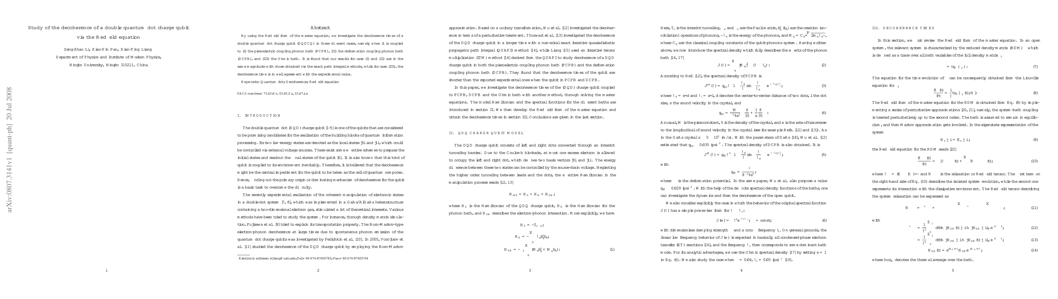 A study investigates decoherence times of a double quantum dot charge qubit in three different baths using the Redfield equation, showing agreement with exact path integral methods for two cases and good agreement with experimental results for the third case.
