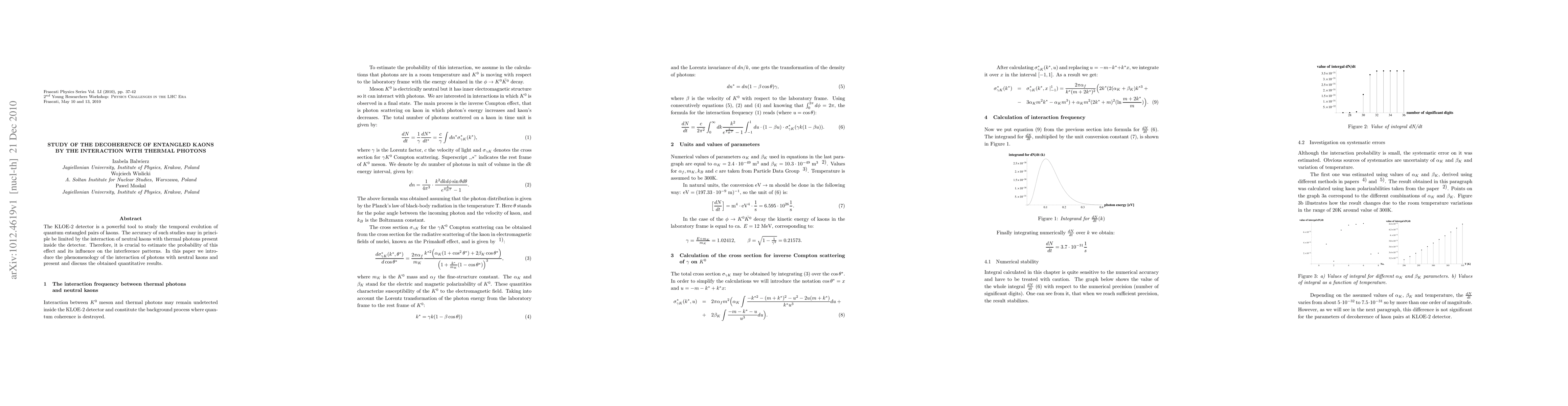 The KLOE-2 detector is a powerful tool to study the temporal evolution of quantum entangled pairs of kaons. The accuracy of such studies may in principle be limited by the interaction of neutral kaons with thermal photons present inside the detector. Therefore, it is crucial to estimate the probability of this effect and its influence on the interference patterns. In this paper we introduce the phenomenology of the interaction of photons with neutral kaons and present and discuss the obtained quantitative results.