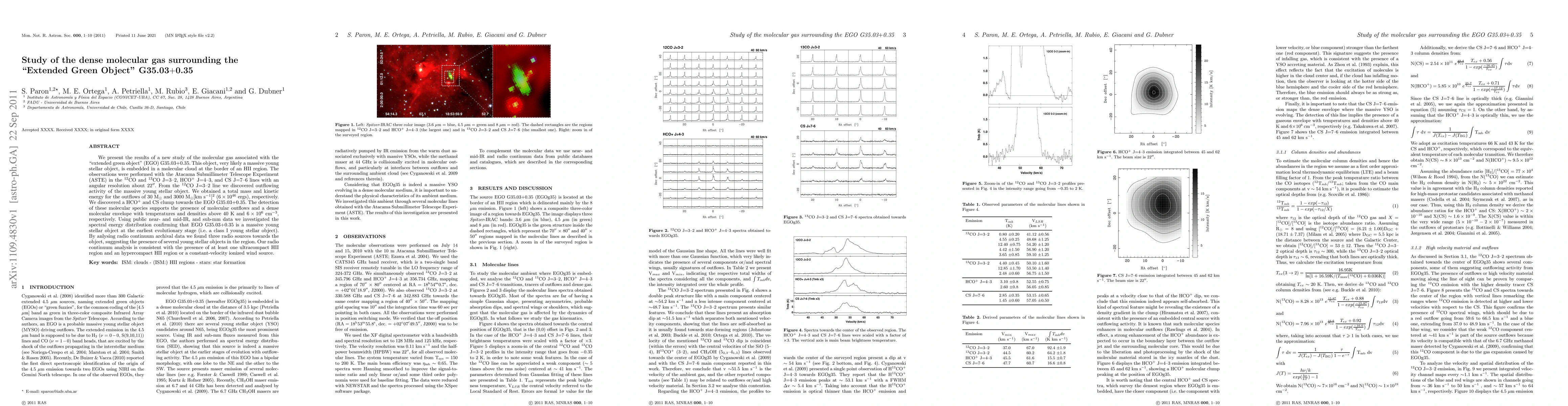 We present the results of a new study of the molecular gas associated with the "extended green object" (EGO) G35.03+0.35. This object, very likely a massive young stellar object, is embedded in a molecular cloud at the border of an HII region. The observations were performed with the Atacama Submillimeter Telescope Experiment (ASTE) in the 12CO and 13CO J=3-2, HCO+ J=4-3, and CS J=7-6 lines with an angular resolution about 22". From the 12CO J=3-2 line we discovered outflowing activity of the massive young stellar object. We obtained a total mass and kinetic energy for the outflows of 30 M_sun and 3000 M_sun (km/s)^2 (6 x 10^{46} ergs), respectively. We discovered a HCO+ and CS clump towards the EGO G35.03+0.35. The detection of these molecular species supports the presence of molecular outflows and a dense molecular envelope with temperatures and densities above 40 K and 6 x 10^{6} cm^{-3}, respectively. Using public near- and mid-IR, and sub-mm data we investigated the spectral energy distribution confirming that EGO G35.03+0.35 is a massive young stellar object at the earliest evolutionary stage (i.e. a class I young stellar object). By anlysing radio continuum archival data we found three radio sources towards the object, suggesting the presence of several young stellar objects in the region. Our radio continuum analysis is consistent with the presence of at least one ultracompact HII region and an hypercompact HII region or a constant-velocity ionized wind source.