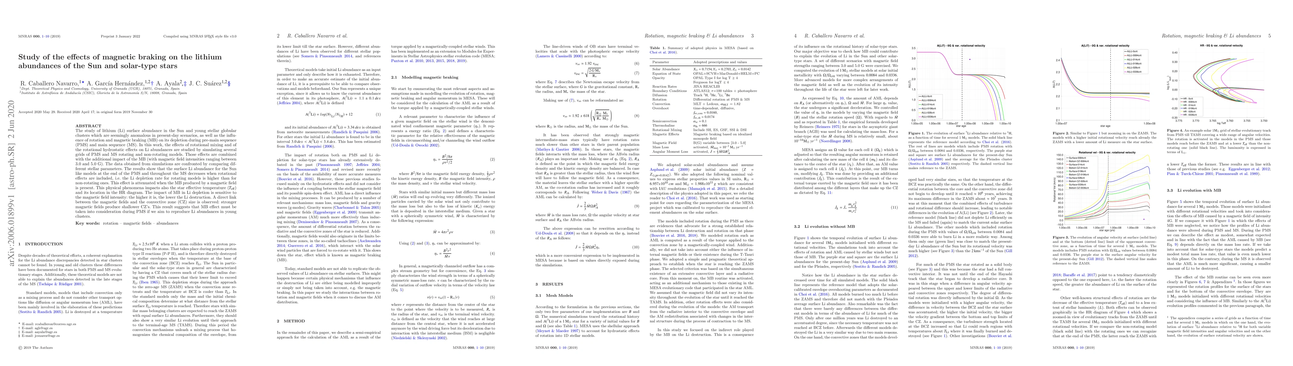 The study of lithium (Li) surface abundance in the Sun and young stellar globular clusters which are seemingly anomalous in present-day scenarios, as well as the influence of rotation and magnetic braking (MB) on its depletion during pre-main sequence (PMS) and main sequence (MS). In this work, the effects of rotational mixing and of the rotational hydrostatic effects on Li abundances are studied by simulating several grids of PMS and MS rotating and non-rotating models. Those effects are combined with the additional impact of the MB (with magnetic field intensities ranging between 3.0 and 5.0 G). The data obtained from simulations are confronted by comparing different stellar parameters. The results show that the surface Li abundance for the Sun like models at the end of the PMS and throughout the MS decreases when rotational effects are included, i.e. the Li depletion rate for rotating models is higher than for non-rotating ones. This effect is attenuated when the MB produced by a magnetic field is present. This physical phenomena impacts also the star effective temperature ($T_{\mathrm{eff}}$) and its location in the HR diagram. The impact of MB in Li depletion is sensitive to the magnetic field intensity: the higher it is, the lower the Li destruction. A direct link between the magnetic fields and the convective zone (CZ) size is observed: stronger magnetic fields produce shallower CZ's. This result suggests that MB effect must be taken into consideration during PMS if we aim to reproduce Li abundances in young clusters.